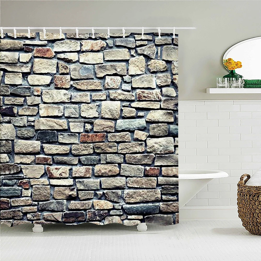 Водонепроницаемая занавеска для душа для ванной, старая кирпичная каменная стена с принтом, занавеска для ванной, занавеска для ванной из полиэфира, занавеска для ванной комнаты