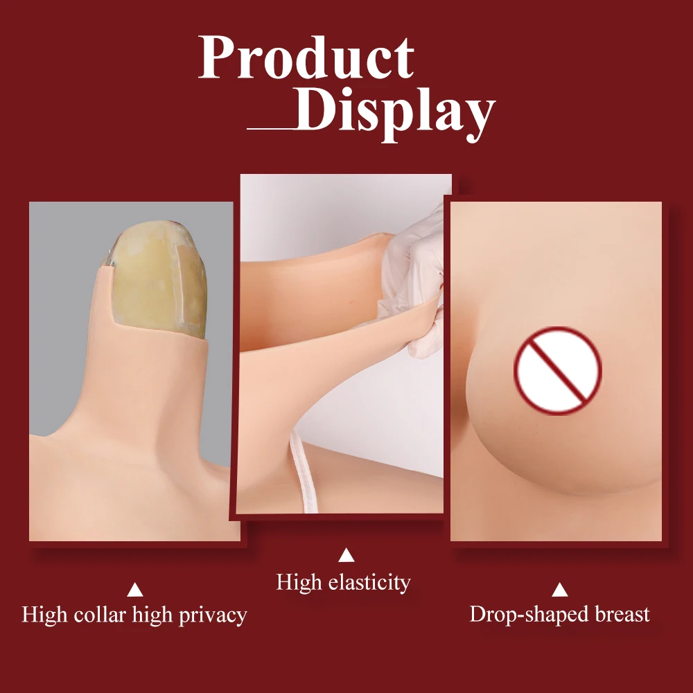 ① Силиконовая грудь: грудь этого изделия наполнена силиконом, драпируется, как натуральная грудь, живо движется с телом, и соответствует изгибам груди, обеспечивая идеальную посадку и комфорт.