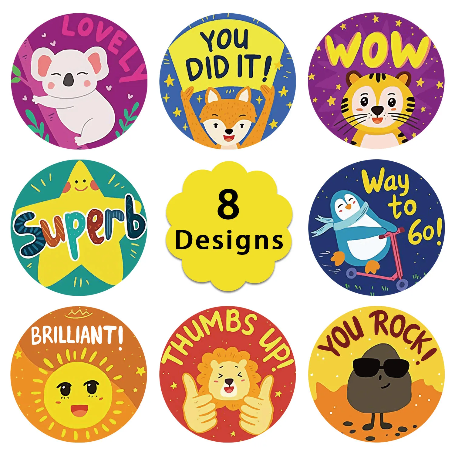 Наклейки Детские, с рисунком льва, 8 видов, 500 шт.рулон