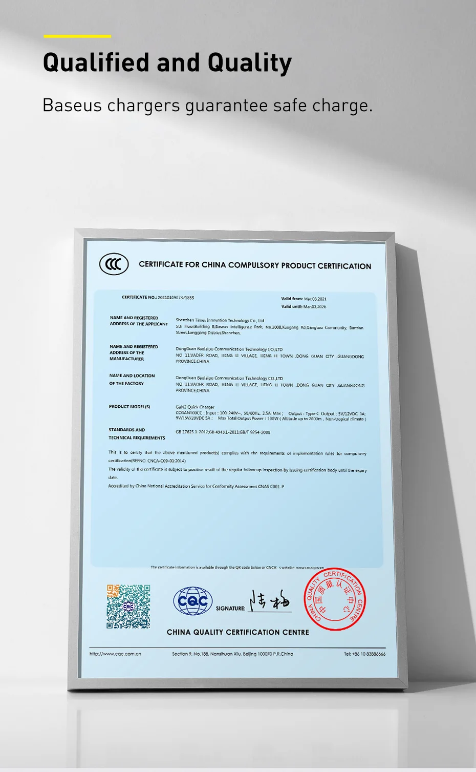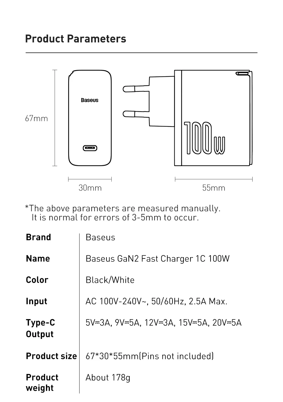 NameBaseus GaN 2 QC 5.0 Fast Charger