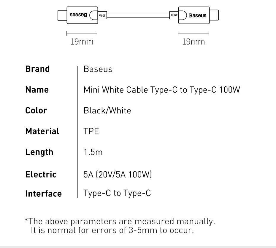 Type-C Output5V/3A, 9V/5A, 12V/3A, 15V/5A, 20V/5A