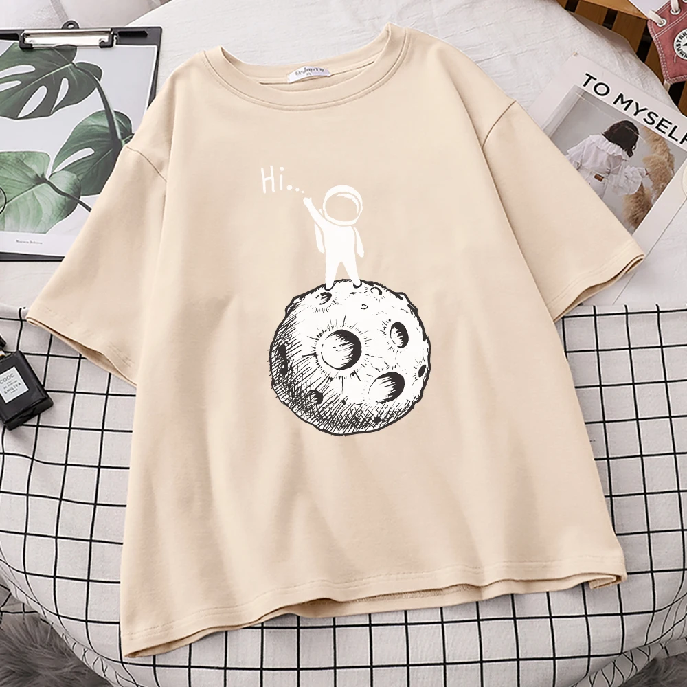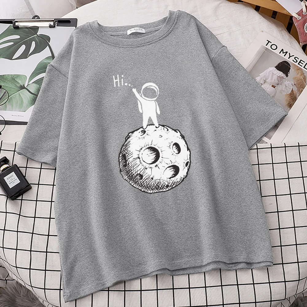 Футболка женская Свободная с круглым вырезом и принтом космонавта