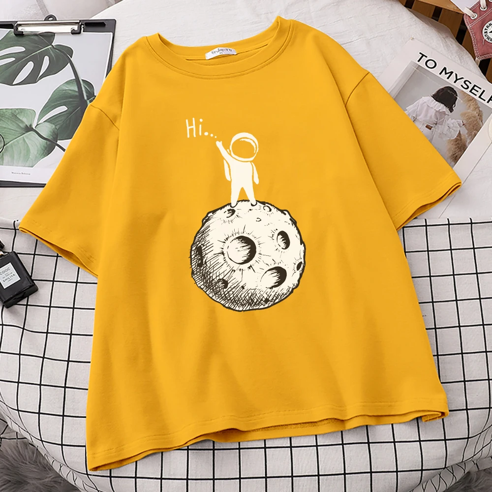 Футболка женская хлопковая с принтом космонавта, с круглым вырезом ...