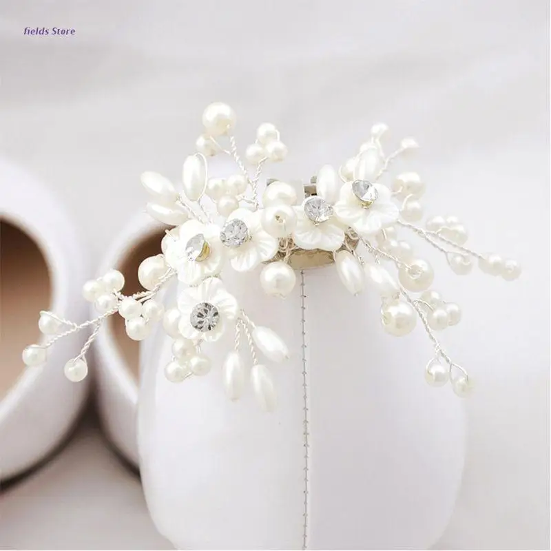 Зажим для обуви с искусственным жемчугом, Цветочные бусины, Элегант...