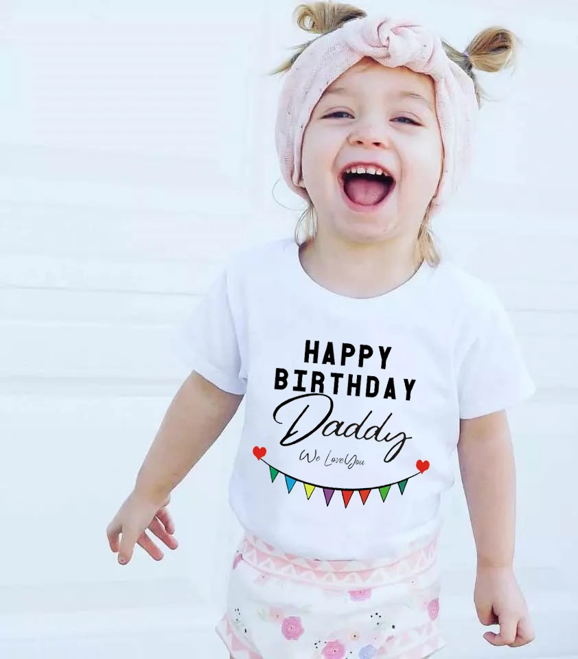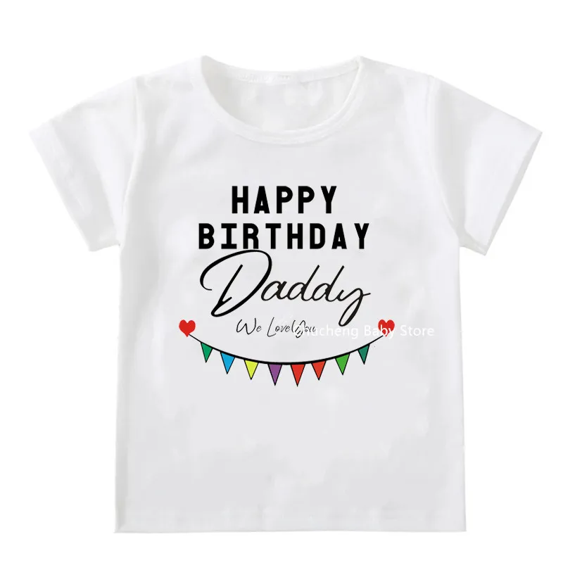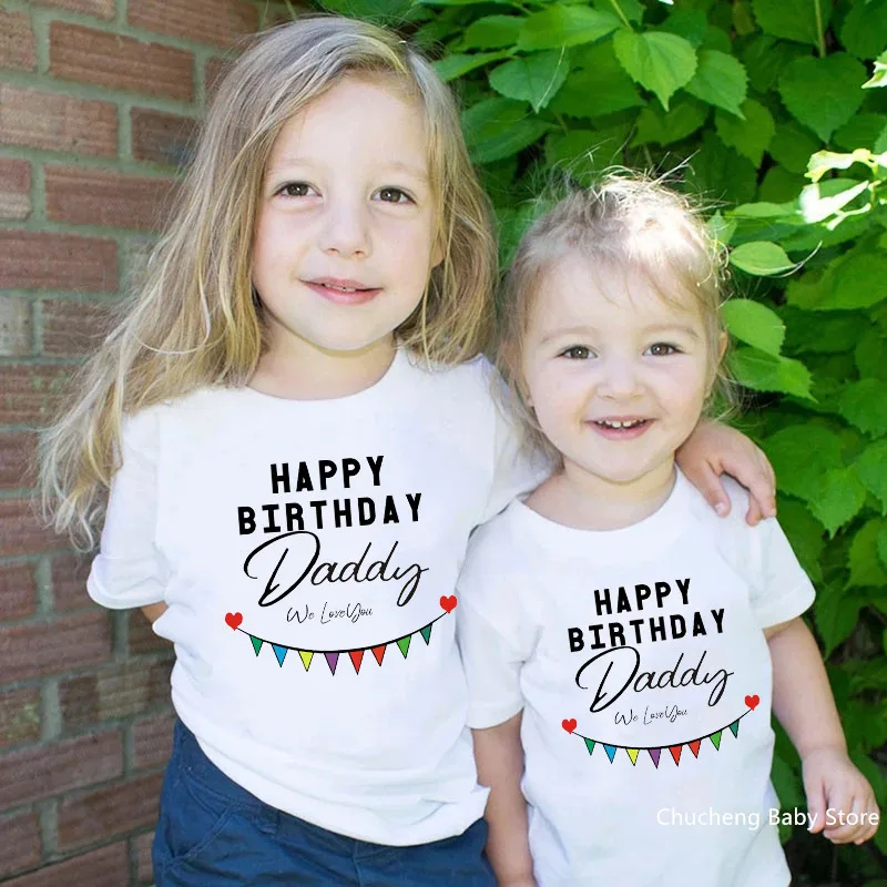 Забавные детские футболки с надписью Happy Birthday, с надписью We Love You, одежда, летние топы с коротким рукавом для маленьких мальчиков и девочек, футболки на день рождения папы