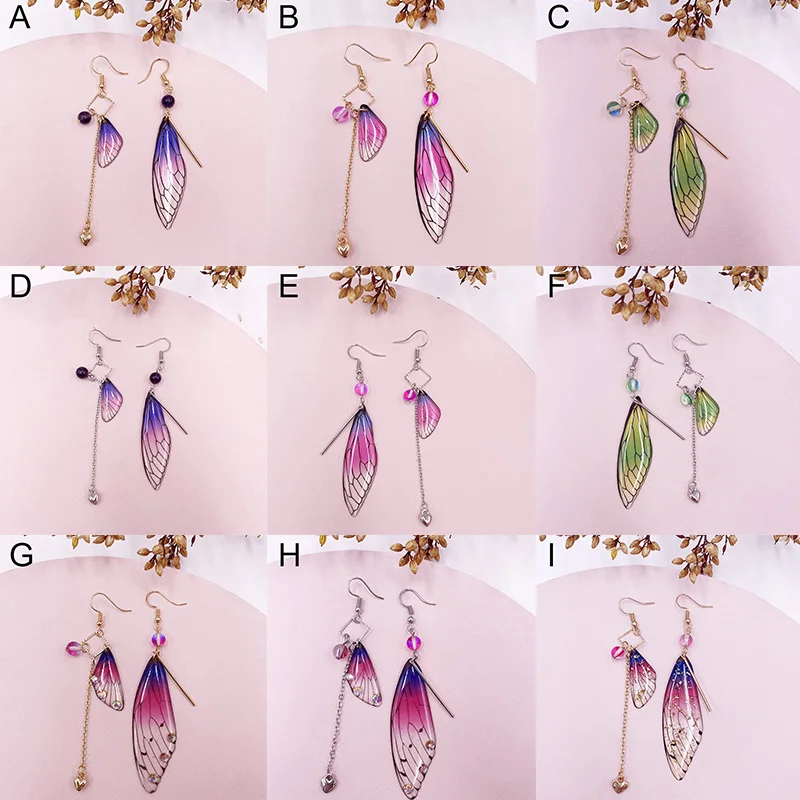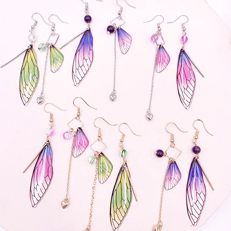 Серьги ручной работы с крылья волшебной бабочки, Женские Висячие серьги с имитацией крыльев насекомых, эффектные Романтические свадебные украшения из фольги