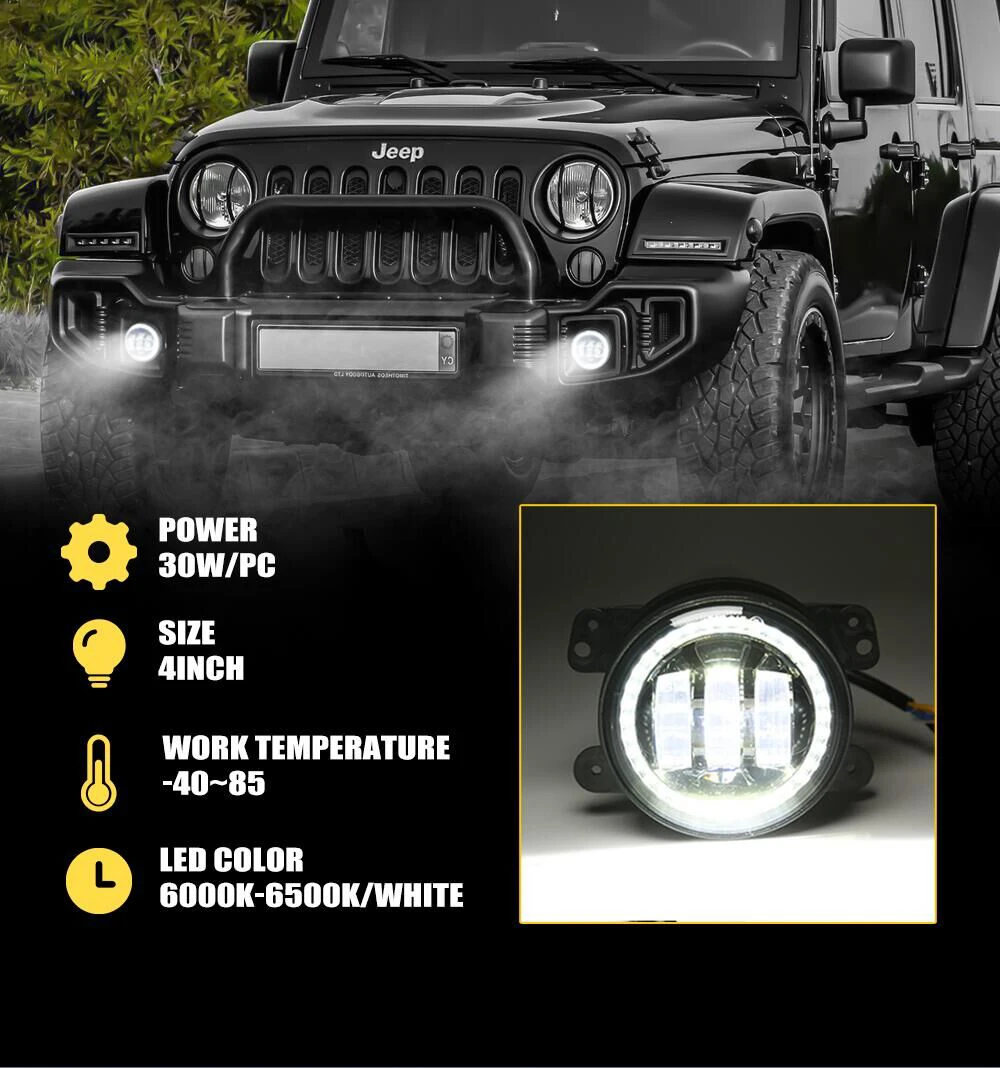 4-дюймовые дневные ходовые огни, противотуманные светодиодные фары, противотумансветильник фары белого цвета, противотуманные фары ближнего и дальнего света, светильник ры Jeep Wrangler JK TJ LJ Grand Cheroke Lada