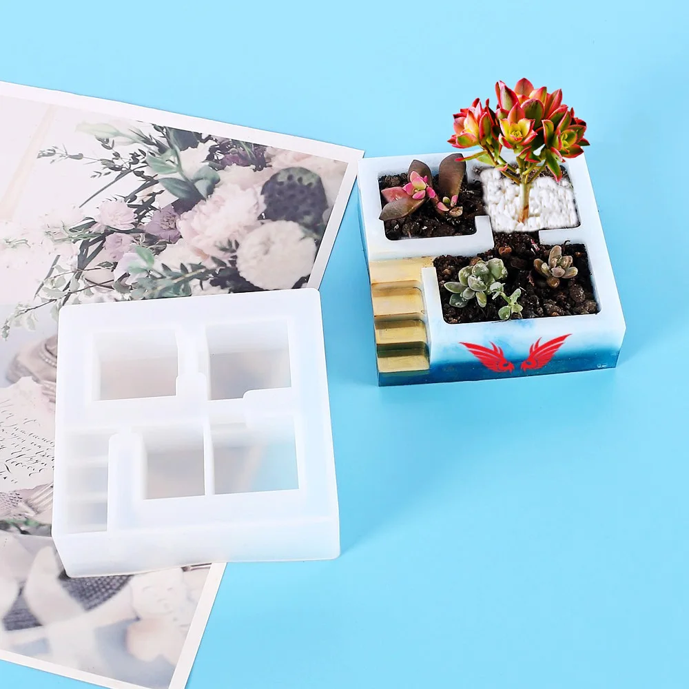 Цветочный горшок для суккулентных растений силиконовые формы для эпоксидной смолы, квадратная Прозрачная форма, полный комплект, рождественские бетонные формы для декора