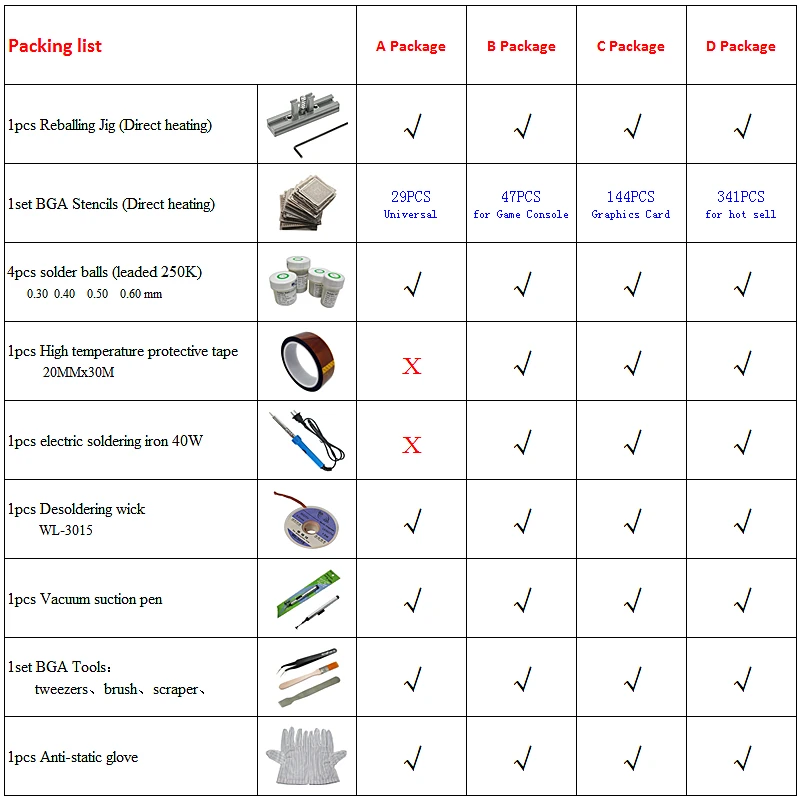 Мы можем поставить несколько BGA переработки/пайки материалов, таких как паяльная станция, трафареты,Паяльные шарики, паяльная паста и так далее, если вам нужны какие-либо из них или другие, пожалуйста, свяжитесь с нами.