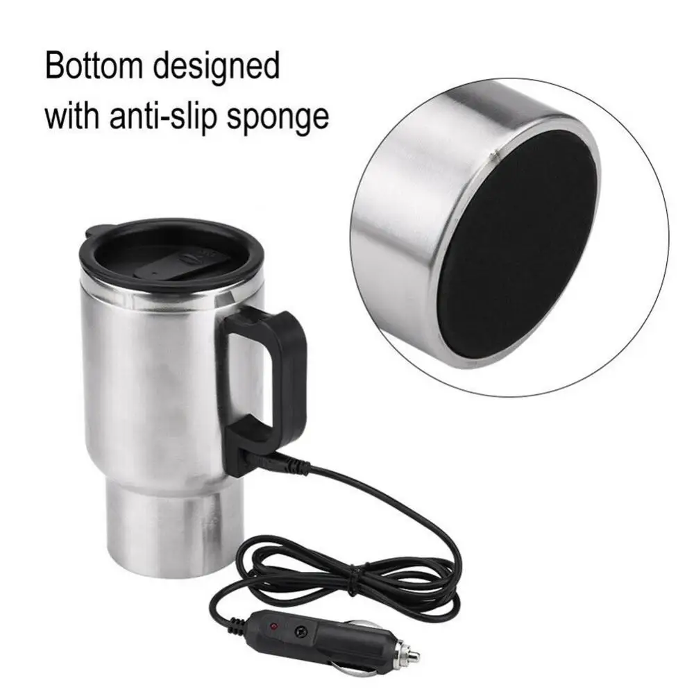 Автомобильная чашка с подогревом, 500 мл, 12 В, автомобильная водонагревающая чашка из нержавеющей стали, чайник, кофейная кружка с подогревом для путешествий, подходит для большинства автомобильных подстаканников