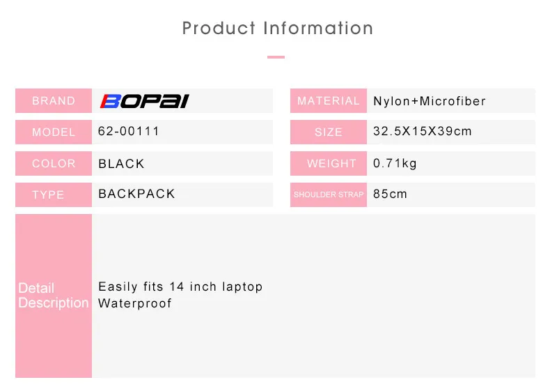 BOPAI женские дорожные сумки, деловой стиль, модный рюкзак Водонепроницаемый OL 14 дюймов студенческий ноутбук большой Ёмкость в школьном, рюкзак с системой анти-вор