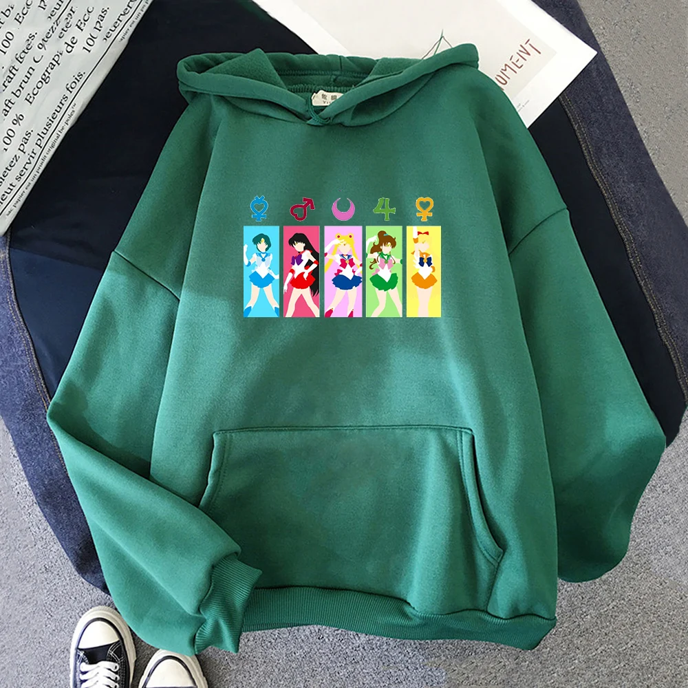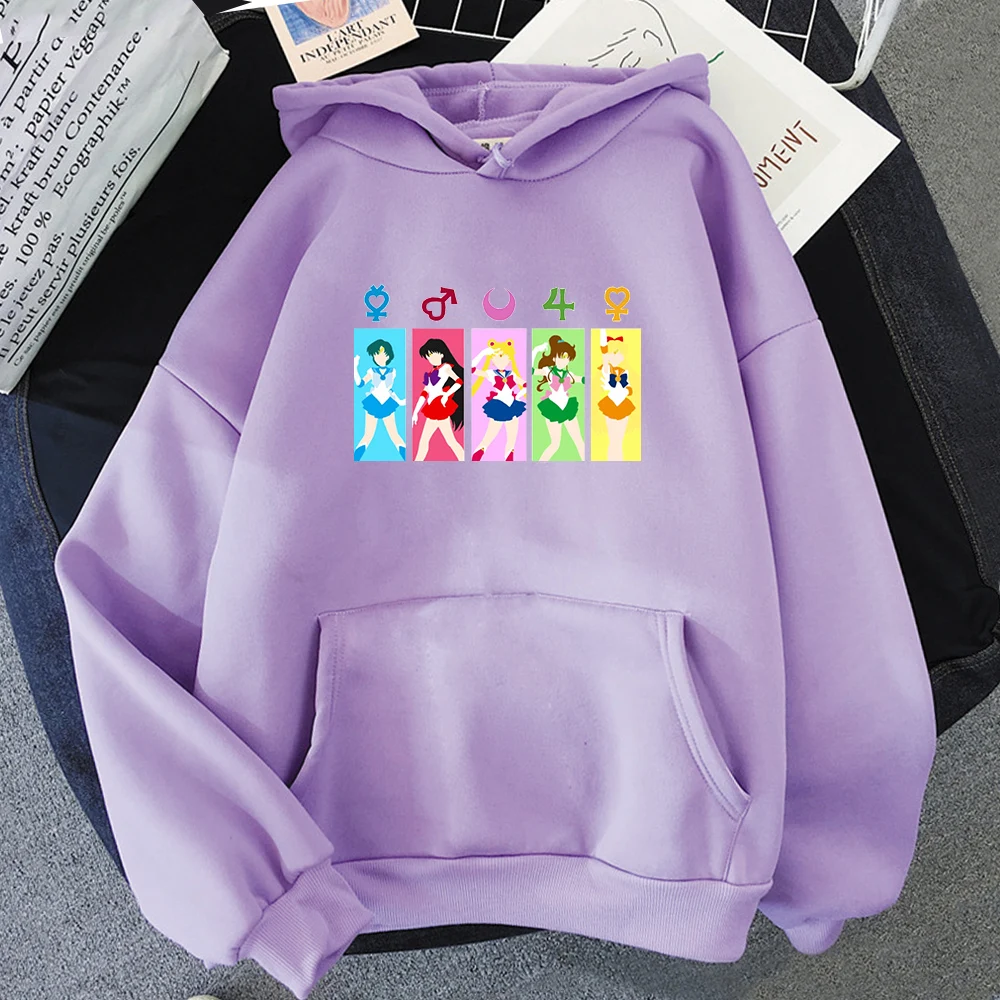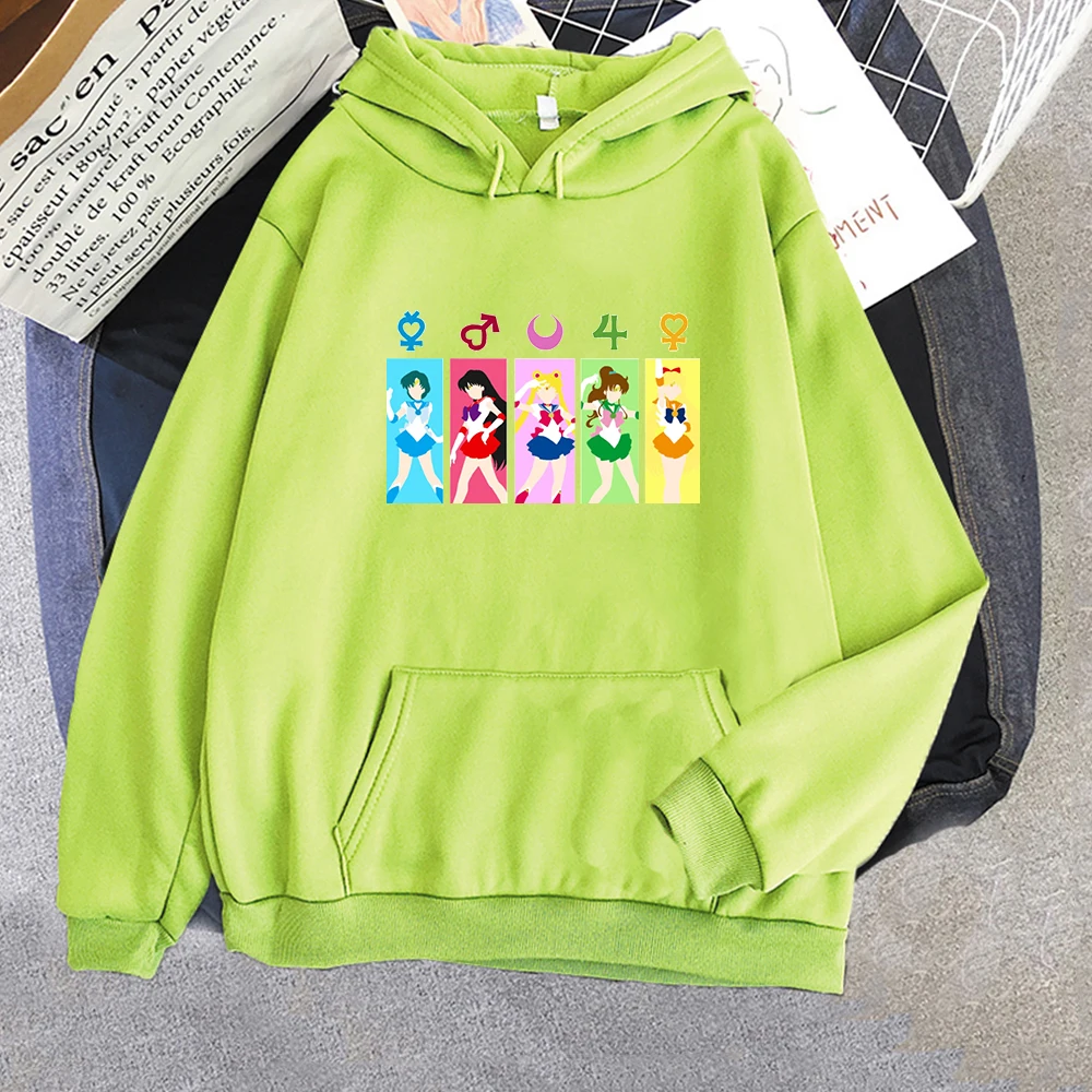 Толстовка Сейлор Мун женская оверсайз, свободный винтажный свитшот с круглым вырезом, повседневный флисовый пуловер, одежда на весну-осень