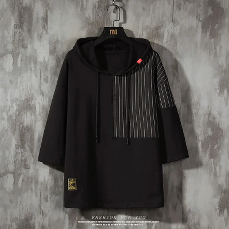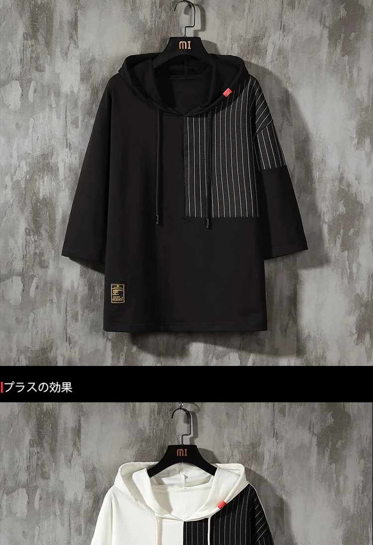Модная рубашка с короткими рукавами в стиле панк, толстовки с капюшоном, черный, белый цвет для мужчин в стиле хип-хоп Уличная одежда из хлопка 2021 летняя одежда больших размеров M-5XL