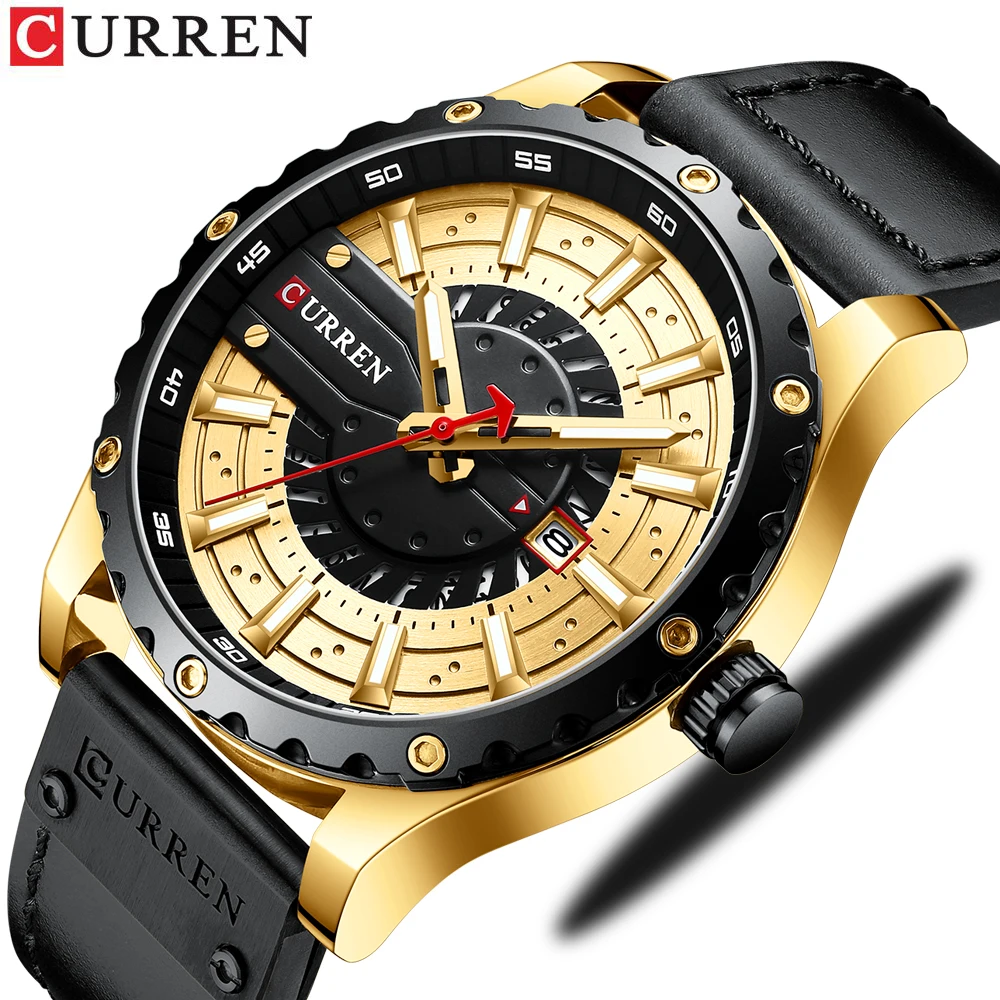 Часы CURREN, мужские наручные часы с кожаным ремешком, повседневные...