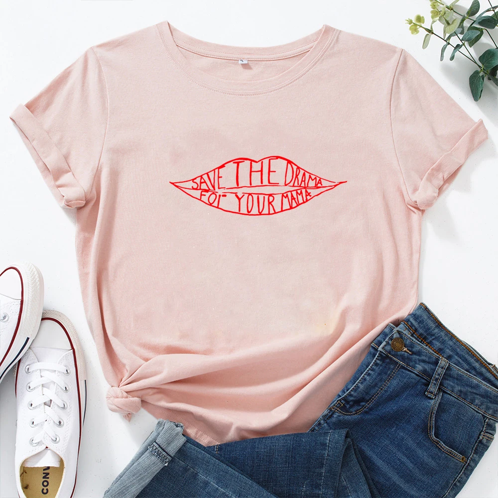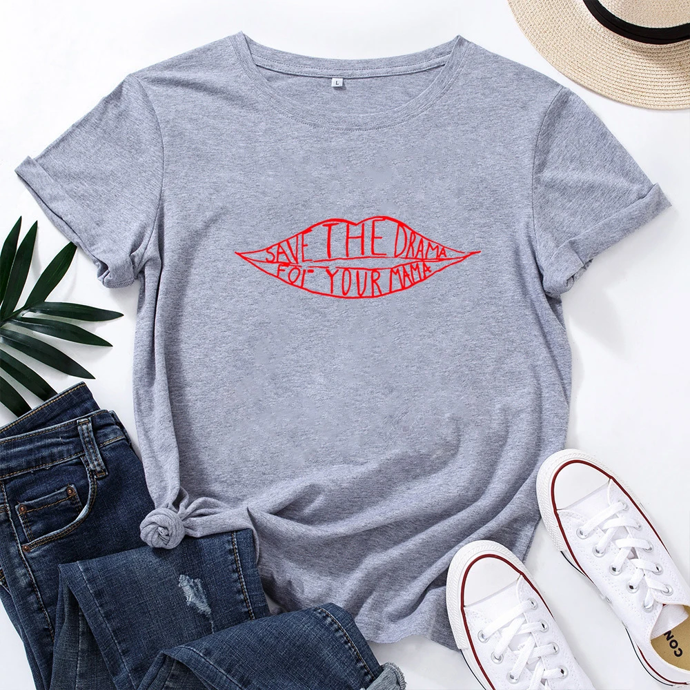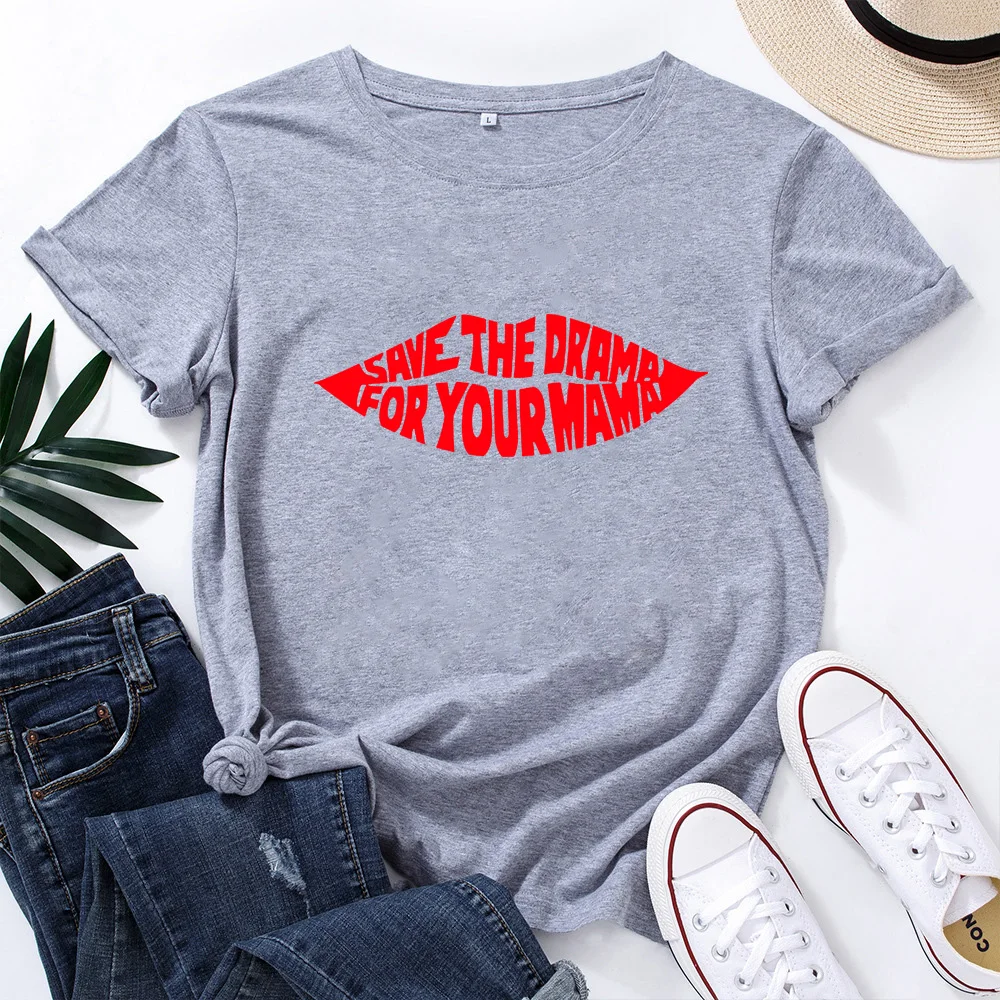 Женская футболка с принтом, женский топ, Повседневная футболка с круглым вырезом, женская футболка с надписью SAVE THE DRAMA FOR YOUR MAMA