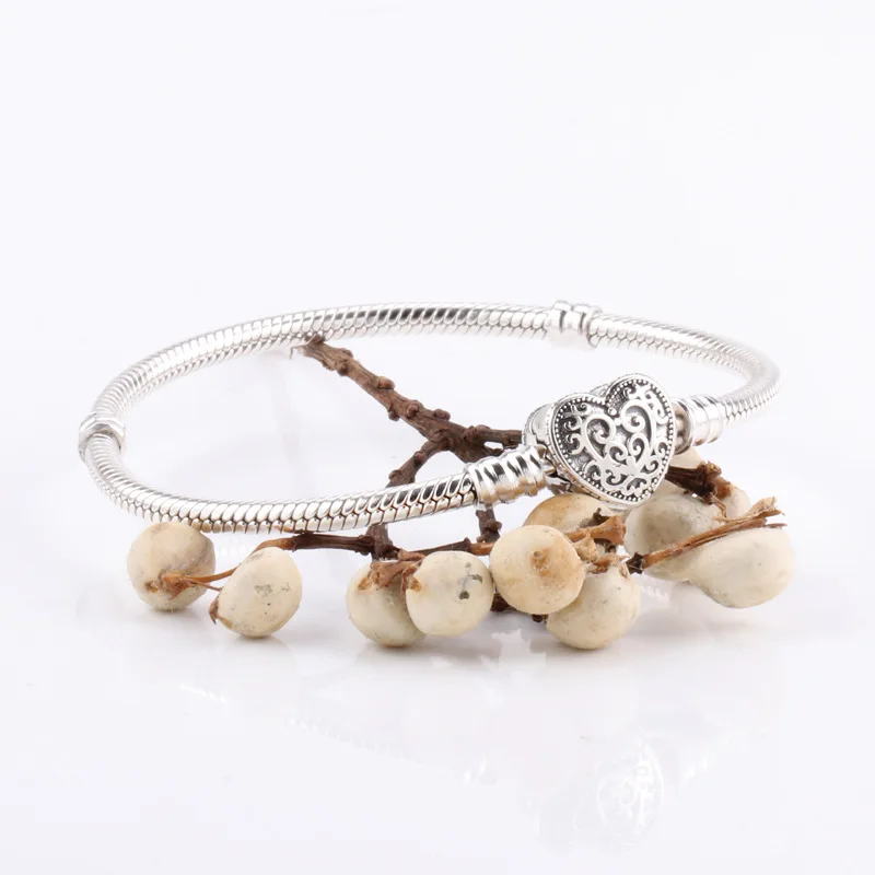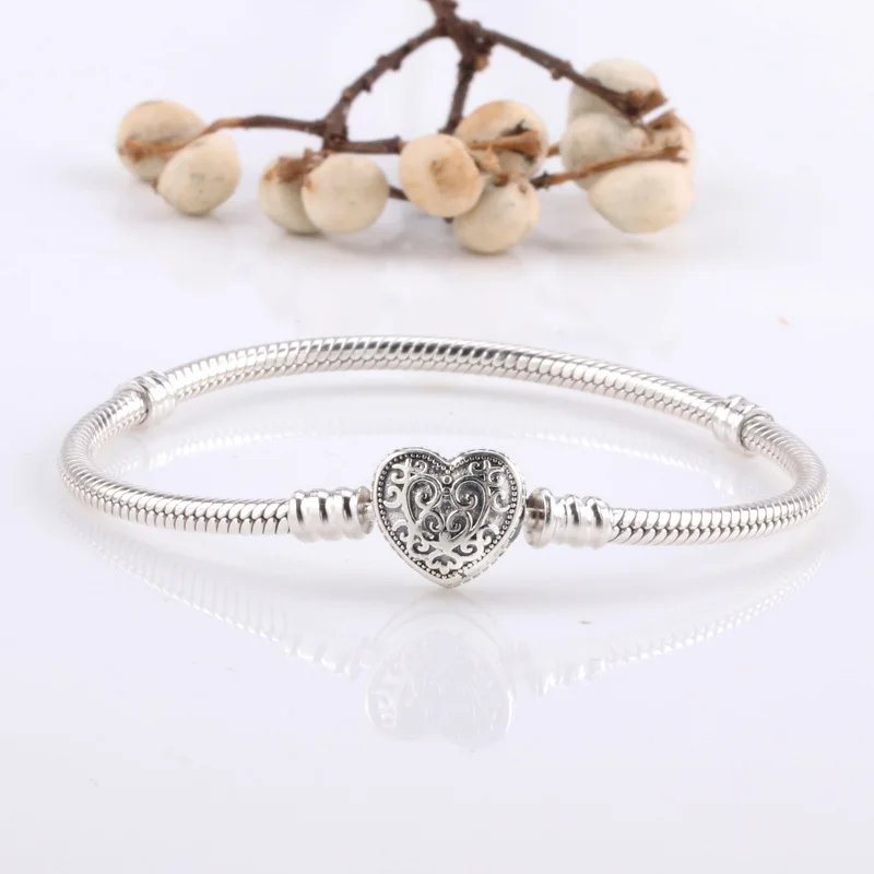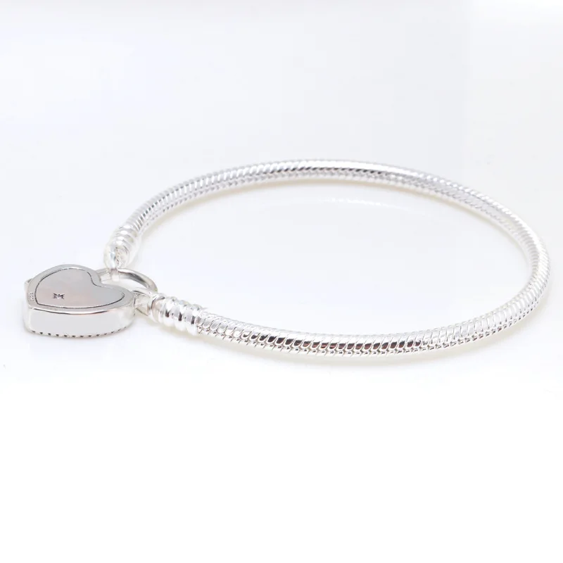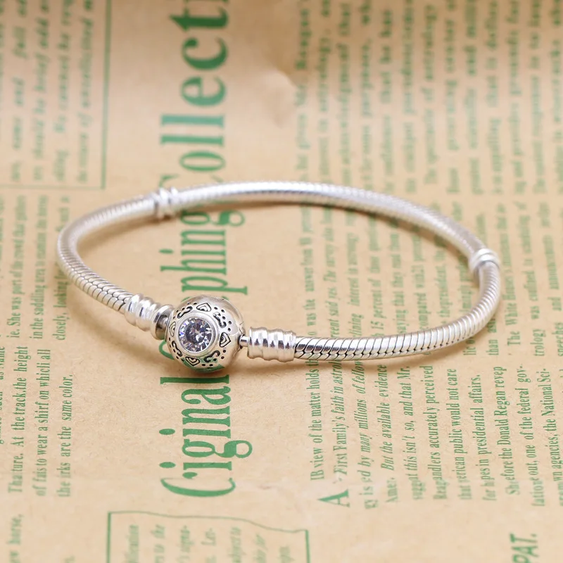 Женский браслет из серебра 925 пробы, с фианитами, в форме сердца, 3 мм
