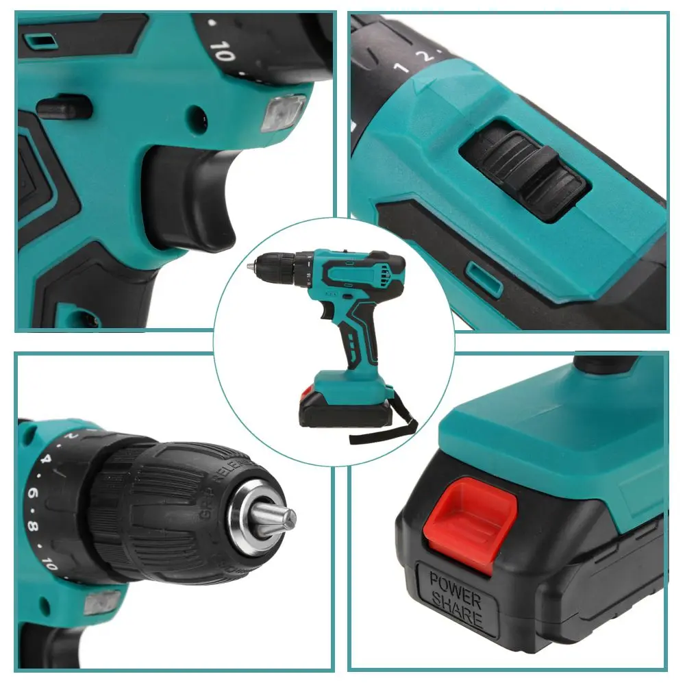 Дрель ударная беспроводная, 10 мм, 2 аккумулятора, 20 + 3 крутящих момента