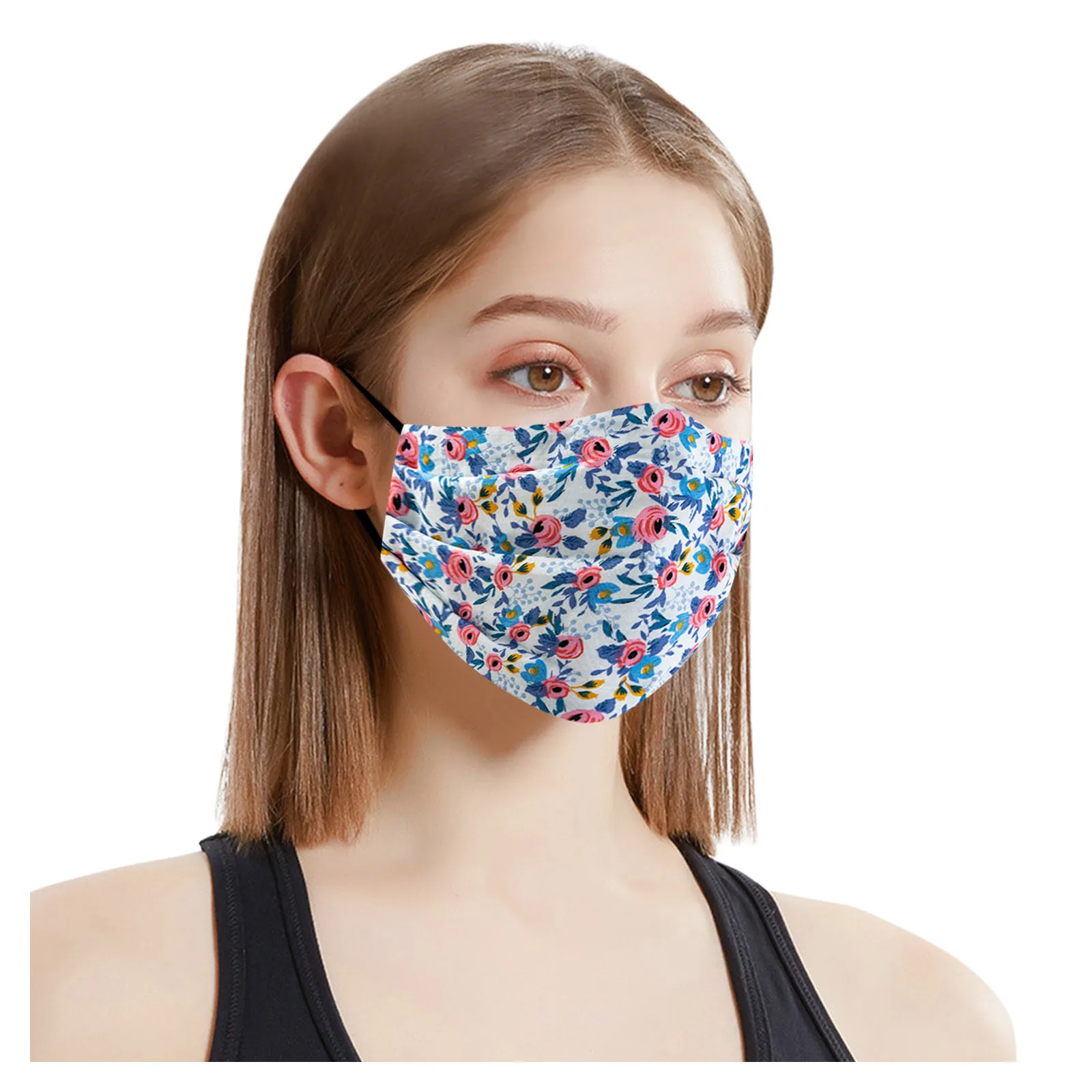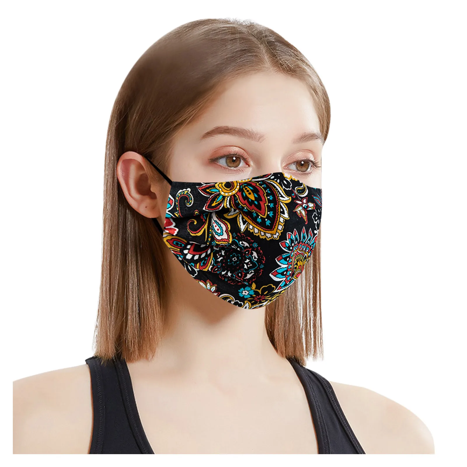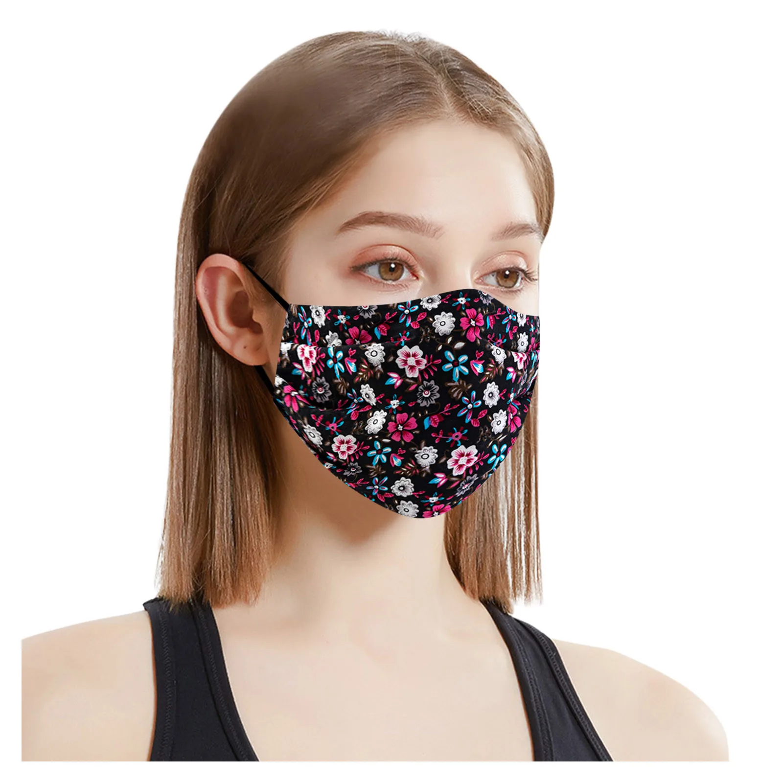 Чехол унисекс для взрослых женщин моющийся Регулируемый хлопок цветочный принт маска для лица с изображением рта