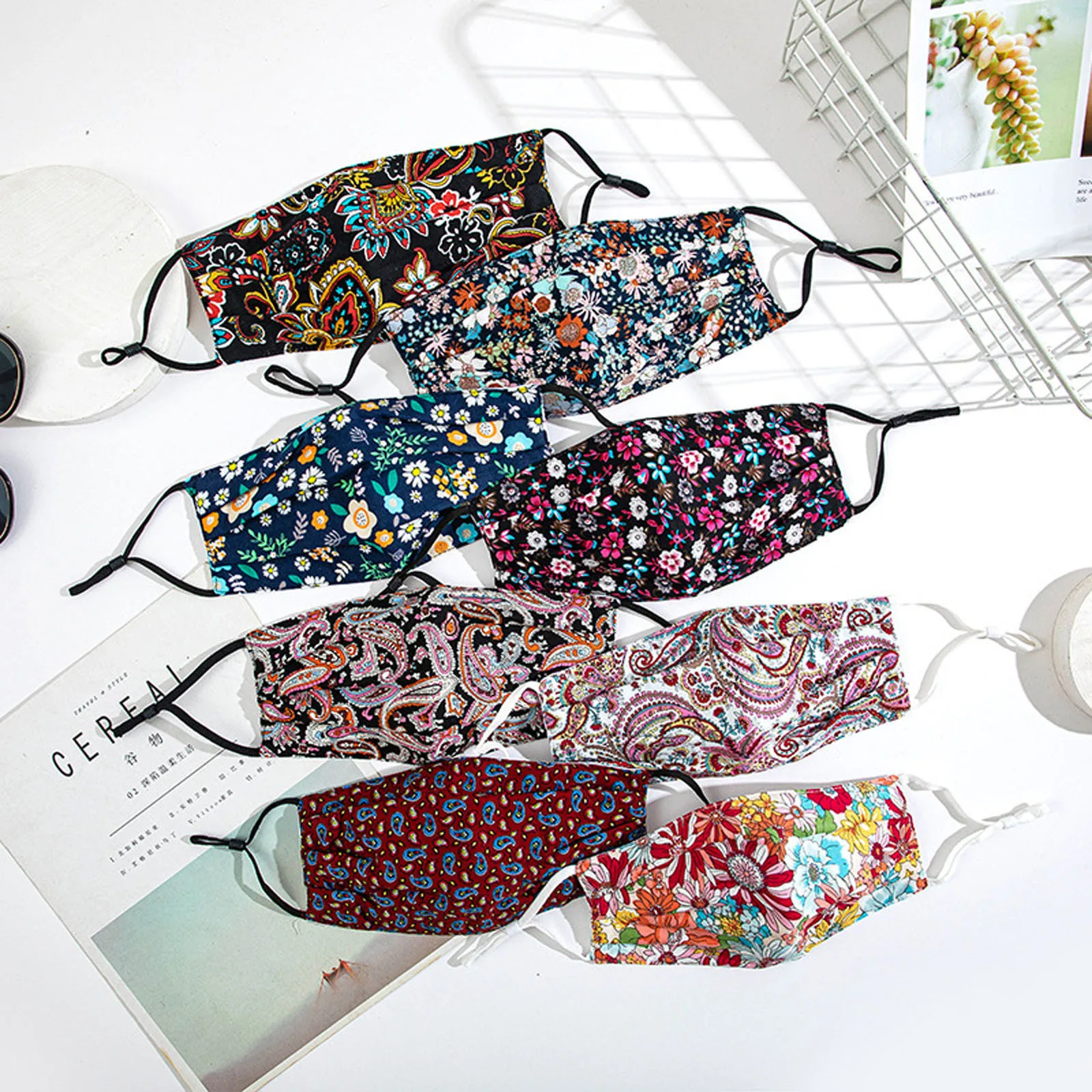 Стирающаяся Регулируемая хлопковая маска для лица с цветочным принт...