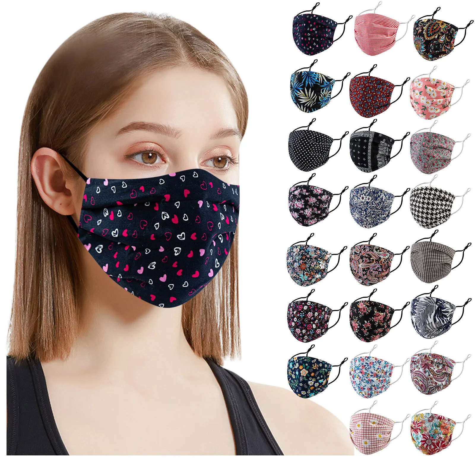 1 шт. многоразовая маска для лица с принтом регулируемые маски с уш...