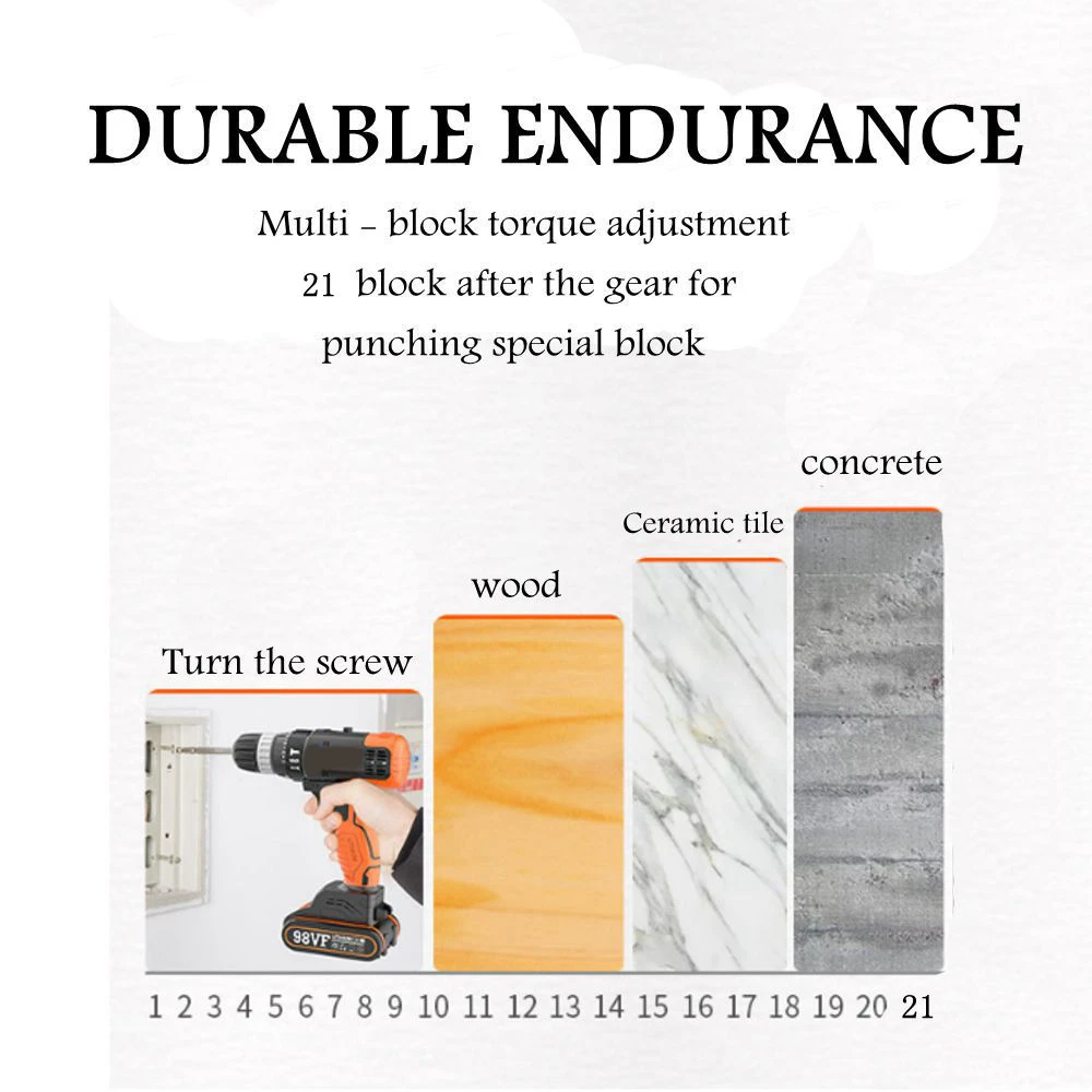 -20 + 3 уровня, обеспечивая 20 видов настроек крутящего момента и 3 вида режимов бурения, может достичь высокой точности работы.
