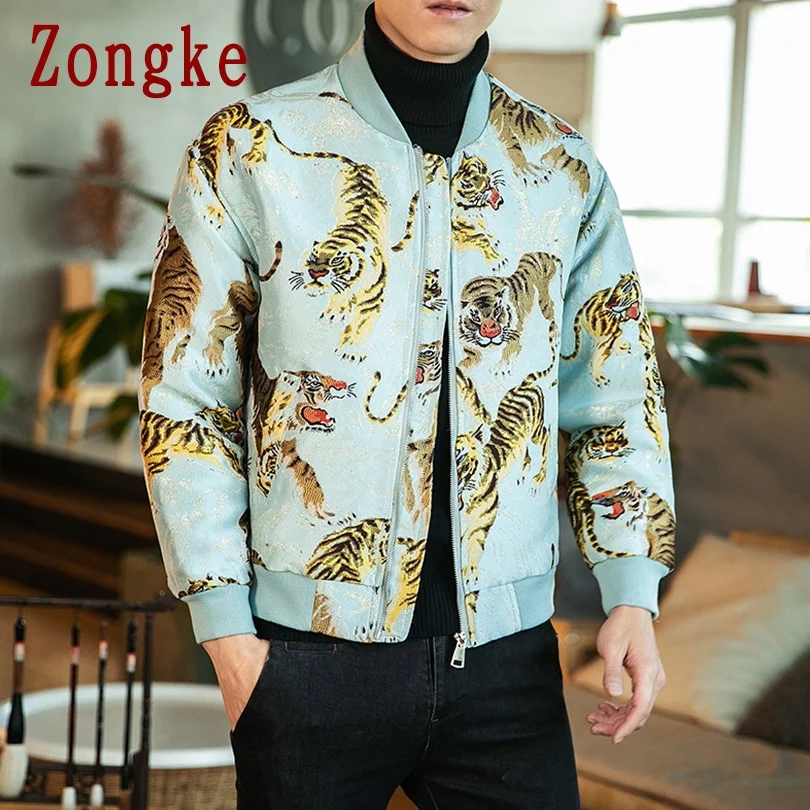 Тигр вышивка зимняя куртка мужская куртка-бомбер мужская одежда в Корейском стиле, Стиль зимняя куртка для мужчин модные 5XL 2021