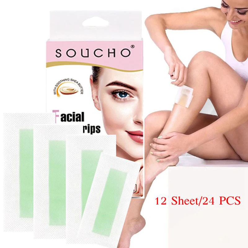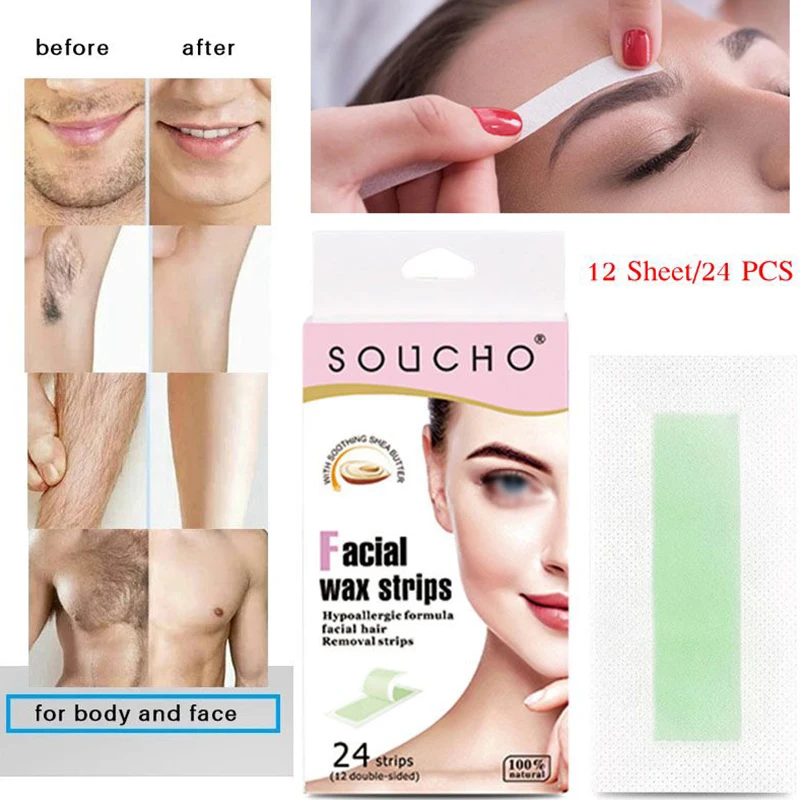 24 шт.компл. восковые полоски для удаления волос, бумага, эпилятор для тела, двухсторонняя Нетканая депиляция, шелковистая для лица, губ, уход за волосами