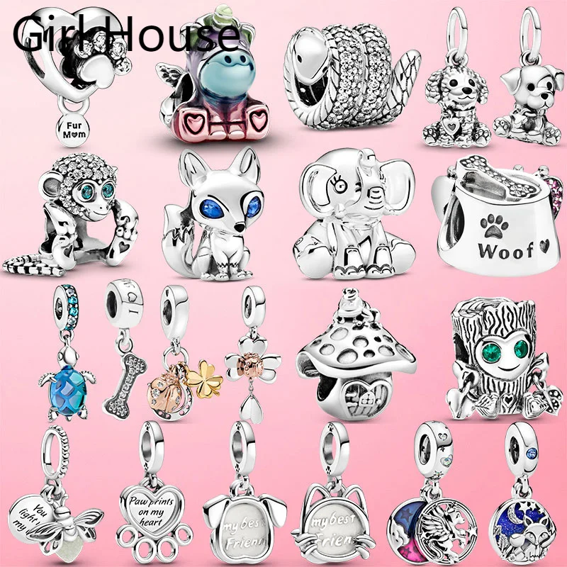 2021 925 пробы серебряная черепаха пушистая лама змея лиса Подвеска Божья коровка коала бусины подходят для оригинального браслета Pandora ювелирные изделия