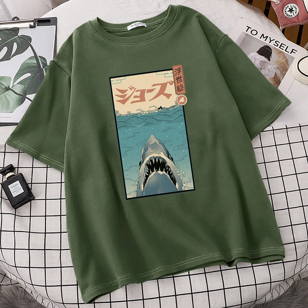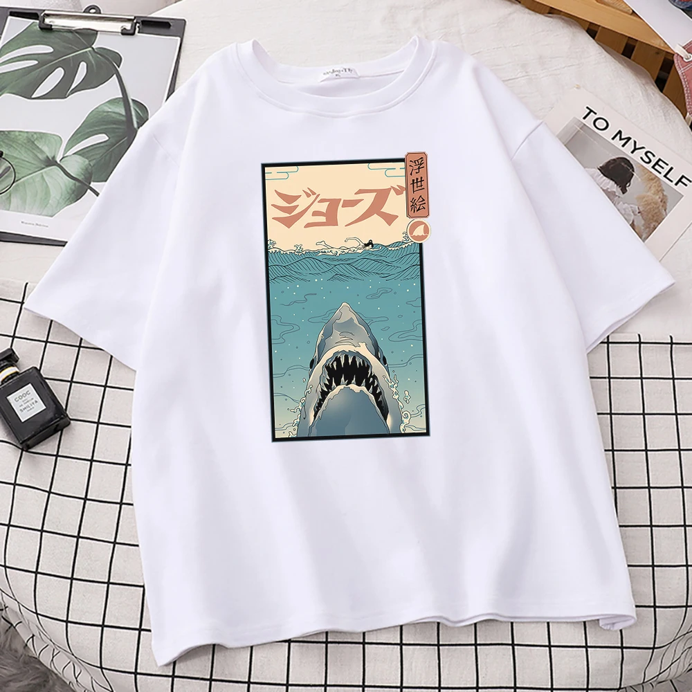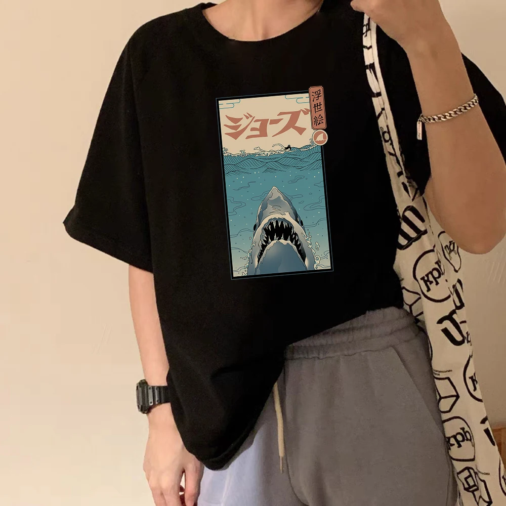 Ukiyoe Футболка с принтом акулы в ретро стиле Женская модная дышащая летняя футболка для отдыха большие размеры s-xxxl футболки для женщин