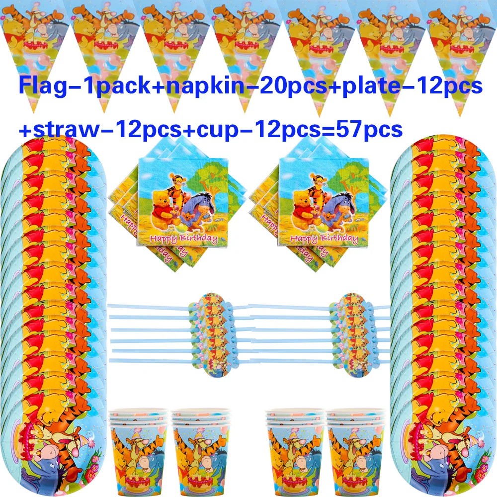 57 шт.лот Diseny Винни-Пух набор посуды для дня рождения тарелка салфетки чашки флажки Соломенные Детские подарки для мальчиков украшение для вечеринки