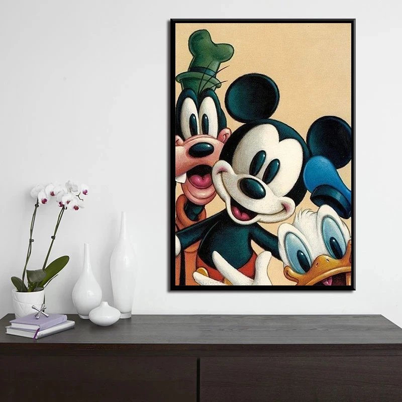 Диснеевский мультяшный холст с Микки и Минни, настенное искусство, ...