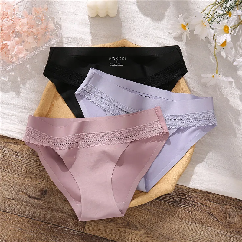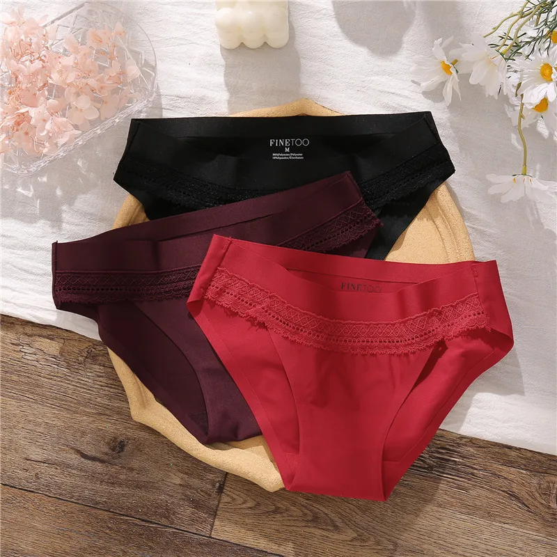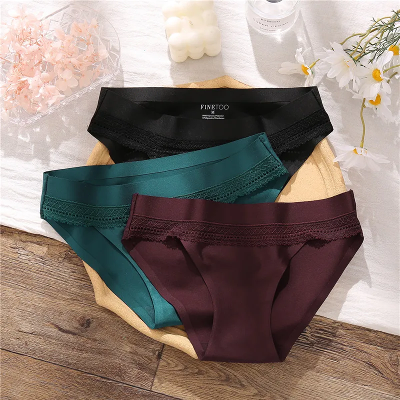 Трусы FINETOO женские кружевные, 2 шт.компл., шелковое нижнее белье, M-XL гладкие удобные трусы для девушек, пикантные трусы, 6 цветов, нижнее белье