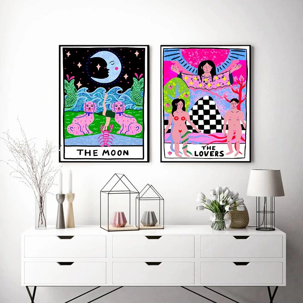 Скандинавская абстрактная Карта Таро для влюбленных, Настенная картина, Картина на холсте, акварель, луна, растение, плакат, печать, гостиная, Декор для дома