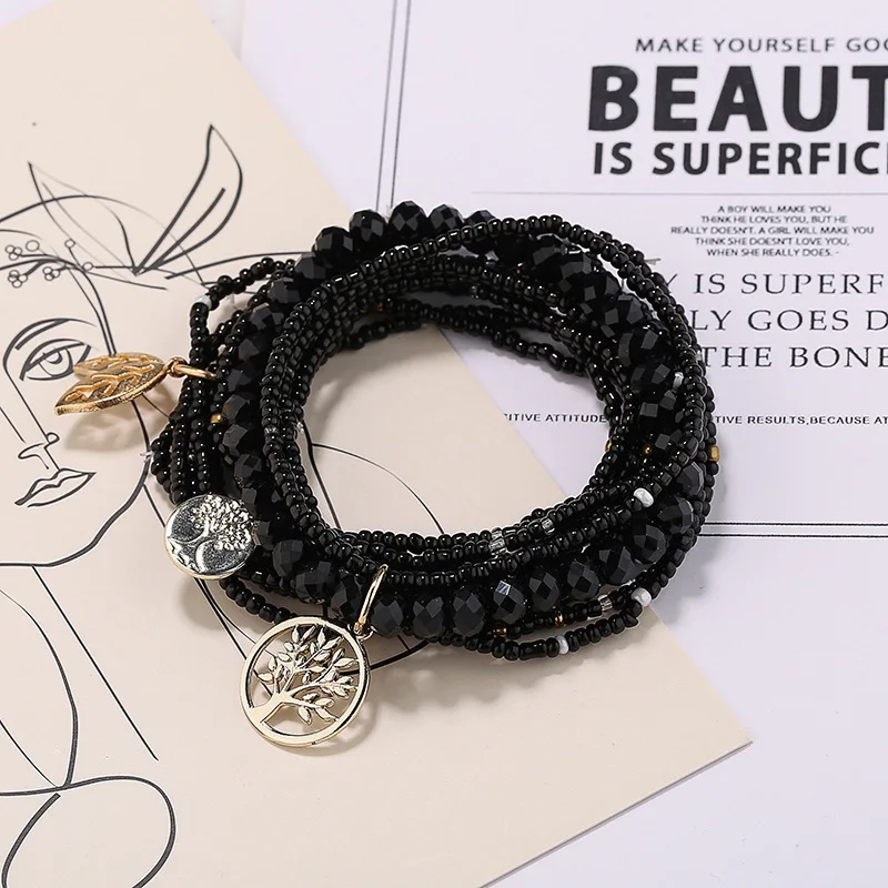 Женские многослойные браслеты в богемном стиле с браслет-Талисман из бусинок и браслетом в этническом стиле