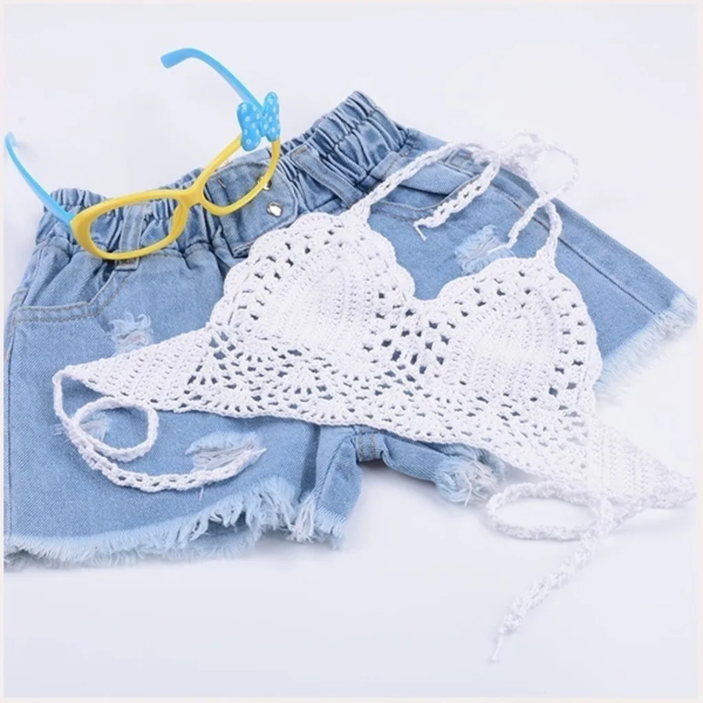 Детский купальник для девочек, вязаный крючком купальник бикини, верхняя одежда