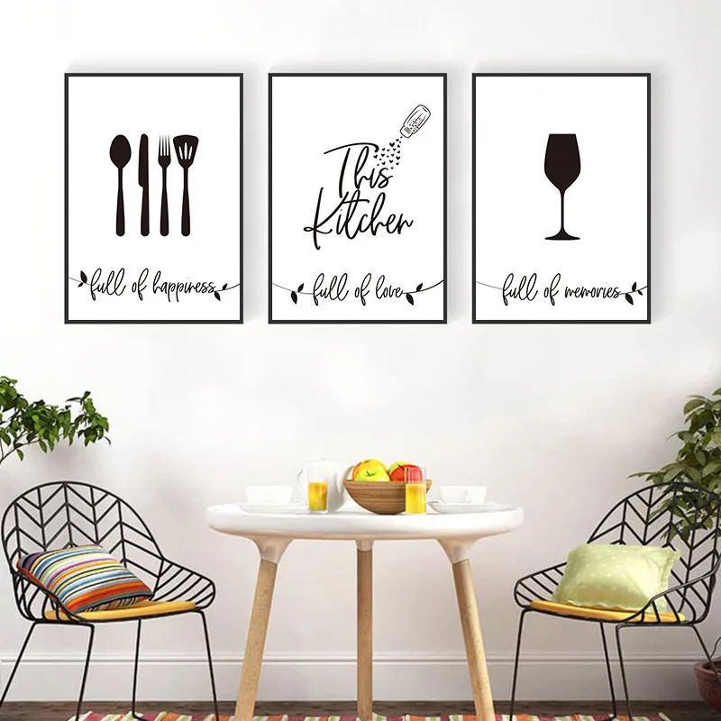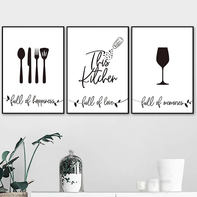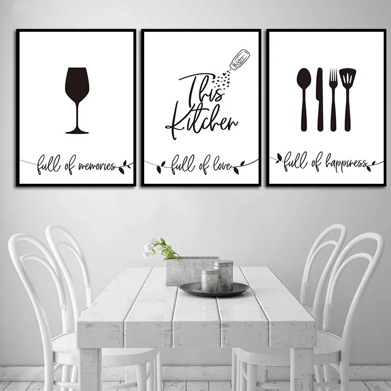Скандинавская посуда, настенная живопись, плакат, нож и вилка, черно-белая абстрактная Настенная картина, декор для кухни и комнаты TB169
