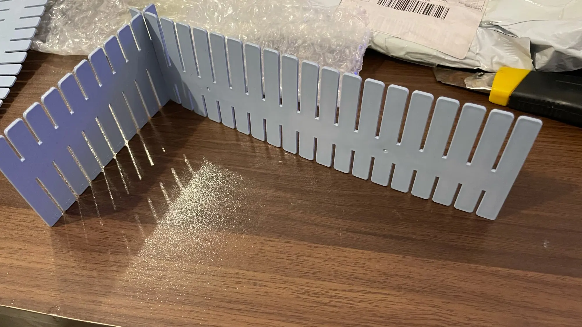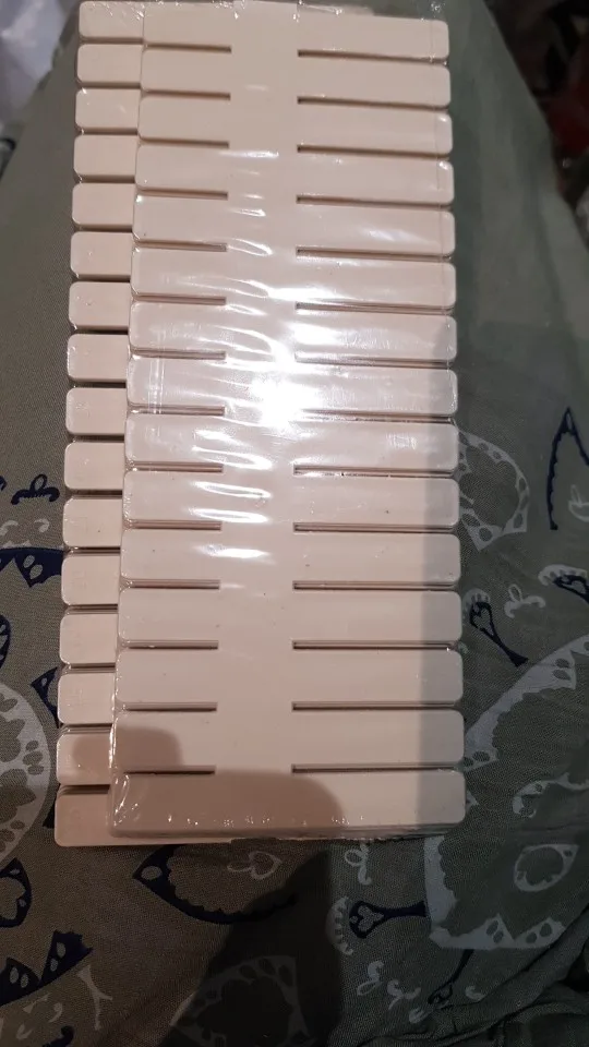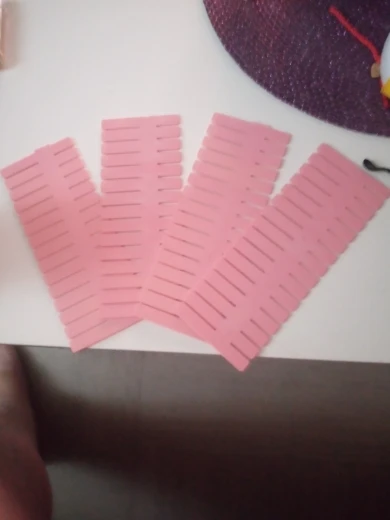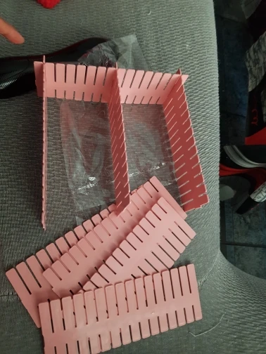 Sturdy material! An awesome option for organizing. It's also great that it comes in pink. Lastly, it seems like this was once a larger piece. They're snapped off and uneven. It doesn't matter because it still fulfills its purpose. However, I feel it would be better it they came as their original size. Then, they can be snapped or just kept in their original size. With that being said, they're totally worth it.