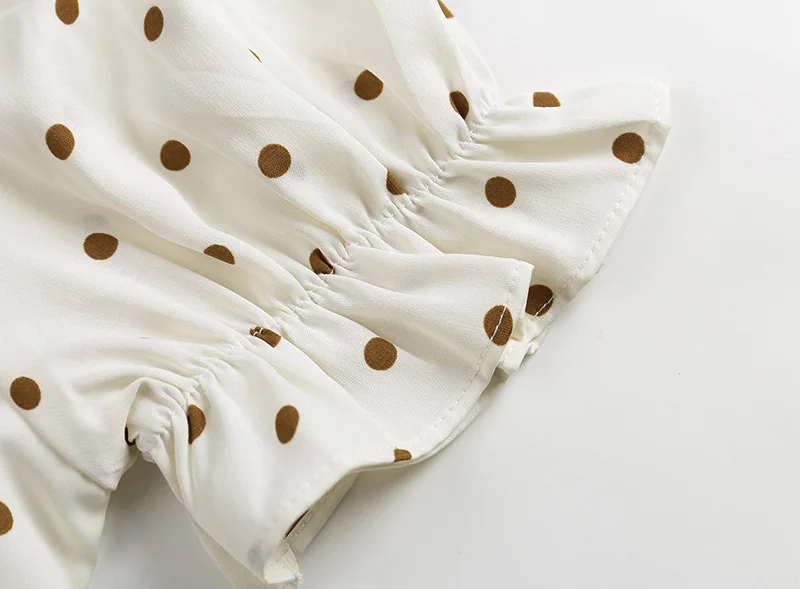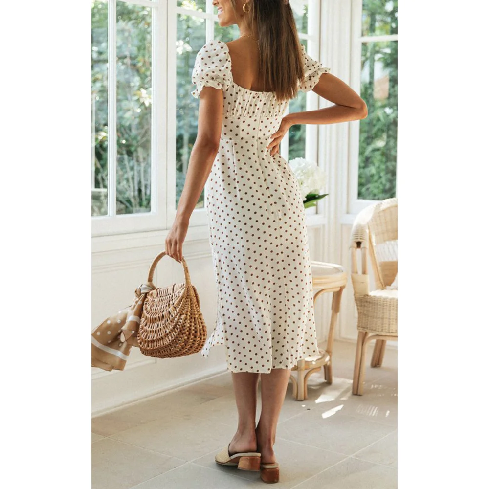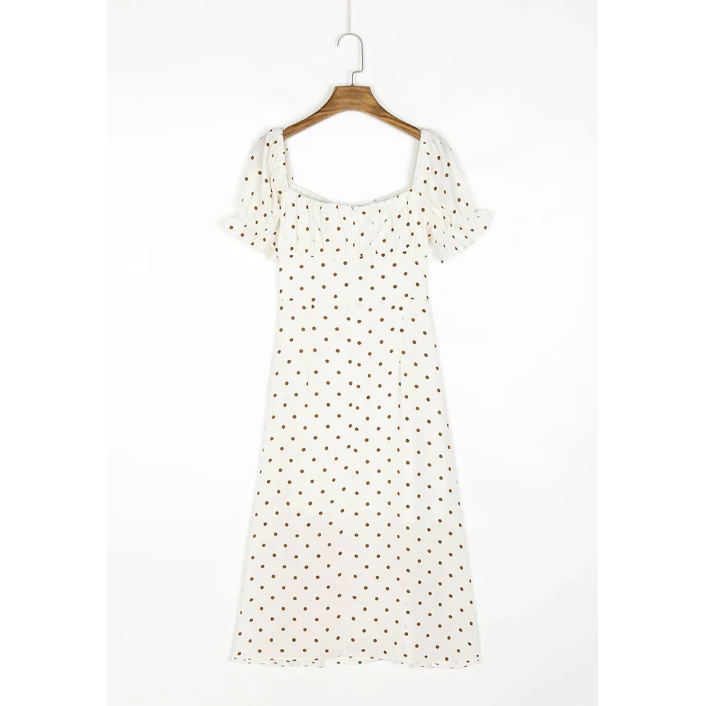 Платья для женщин 2021 элегантное винтажное квадратный вырез галстук летнее платье миди с разрезом короткий пышный рукав повседневное платье в горошек сарафаны женские летние