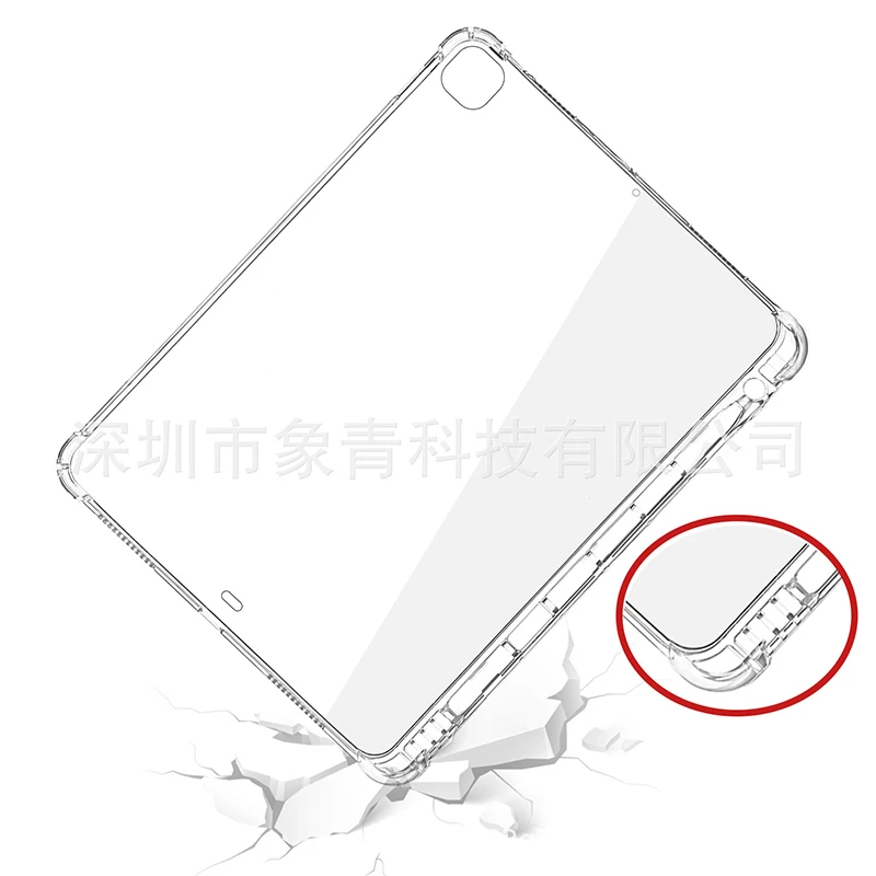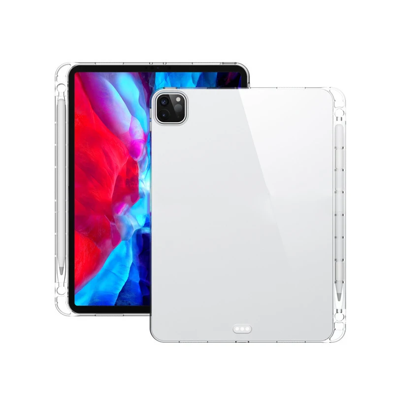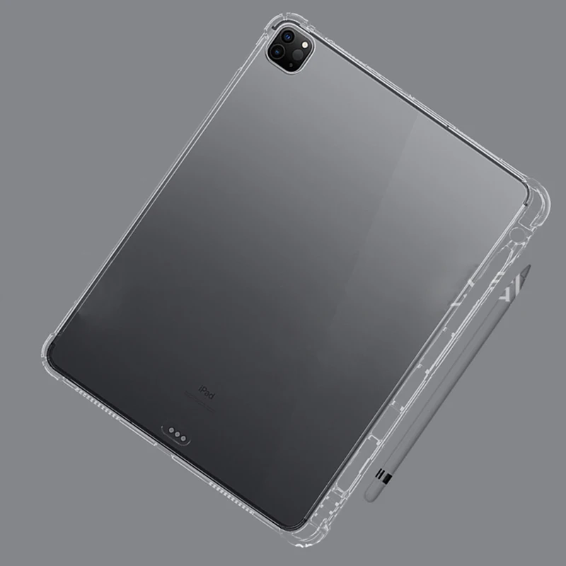 Ультратонкий Прозрачный чехол для iPad Pro 11 12,9 2018 2020, противоударный чехол, мягкий силиконовый защитный чехол из ТПУ с держателем для карандаша
