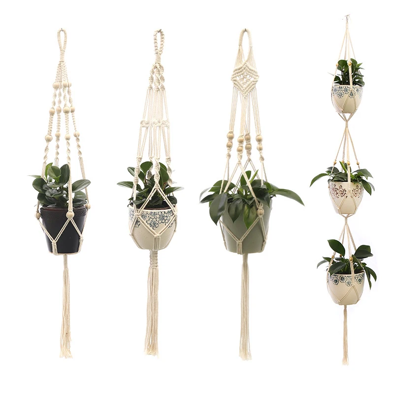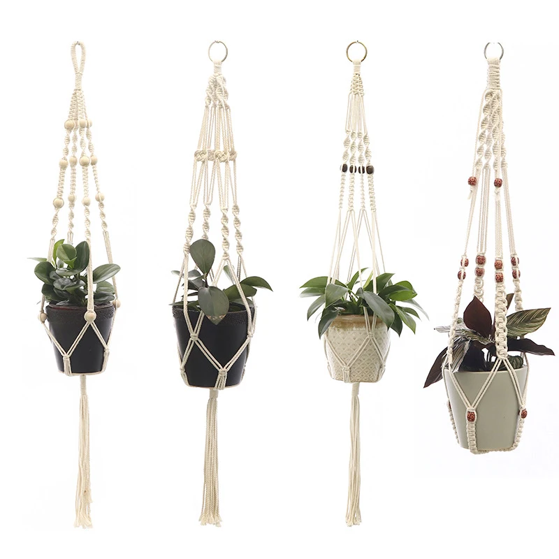 Зеленых растений Творческий из хлопчатобумажного каната цветочный горшок подвесные корзины ручного ткачества Подвеска для растений из макраме Подвеска для цветов товары для домашнего сада