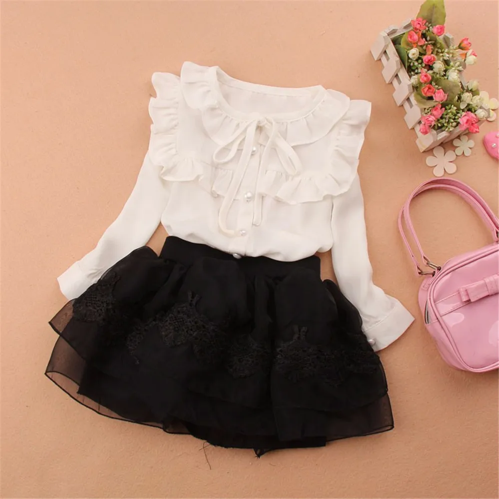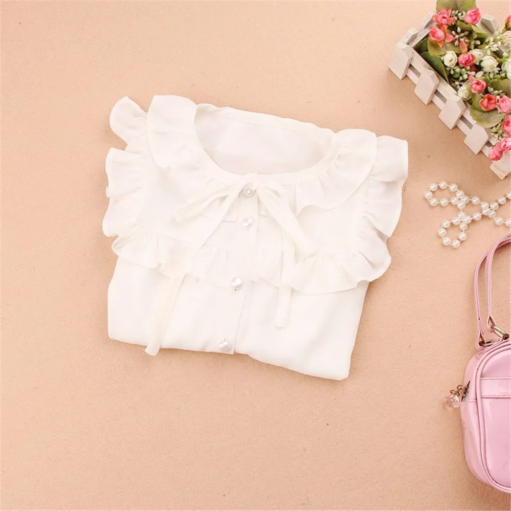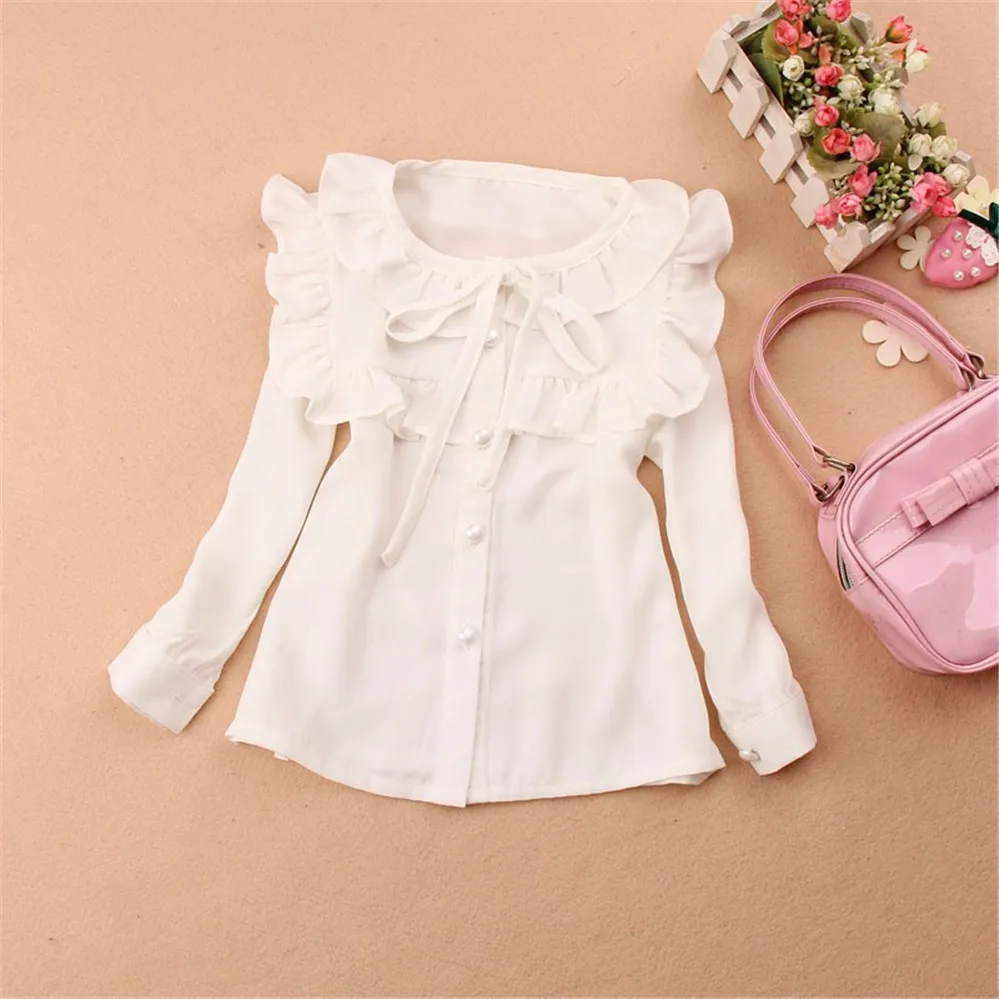 Топ с длинными рукавами для девочек, блузки для школы осенние подростковые рубашки с круглым вырезом и рисунком листьев лотоса Милая шифоновая одежда принцессы для От 2 до 16 лет