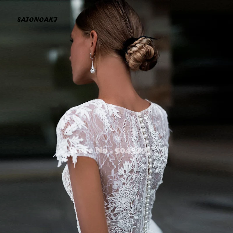 Женское свадебное платье с юбкой-годе, белое платье с круглым вырез...