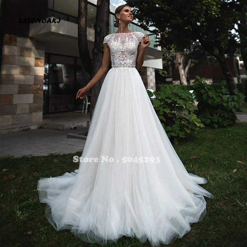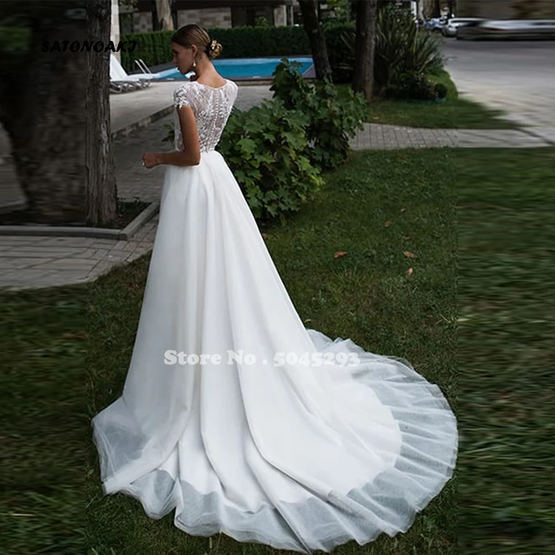 Простые Свадебные платья 2021 Кружевная аппликация Глубокий вырез б...