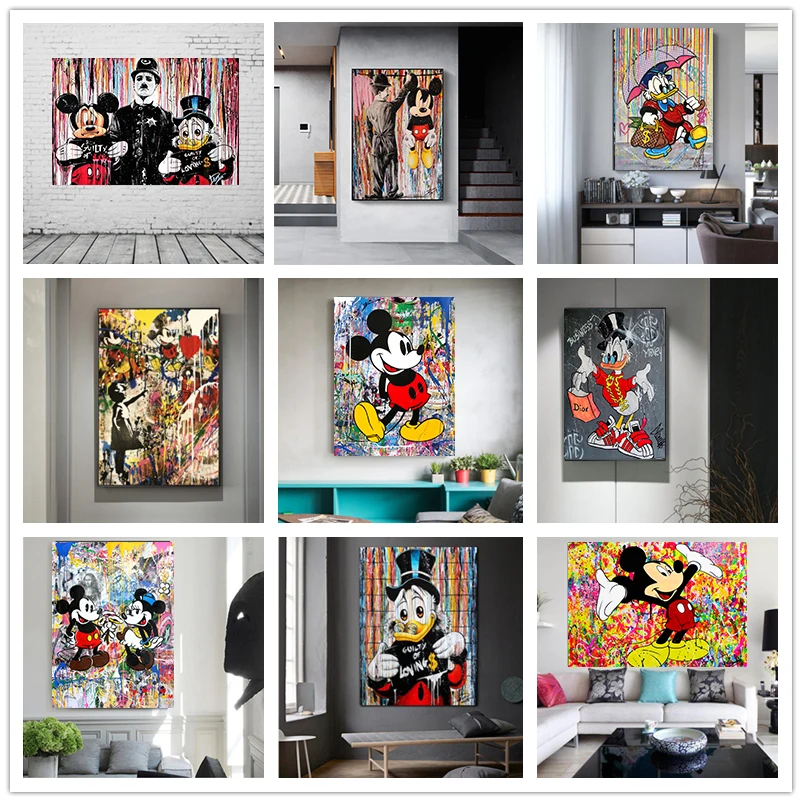 Disney граффити Микки Мышь холст картины Современный поп-арт Плакат...