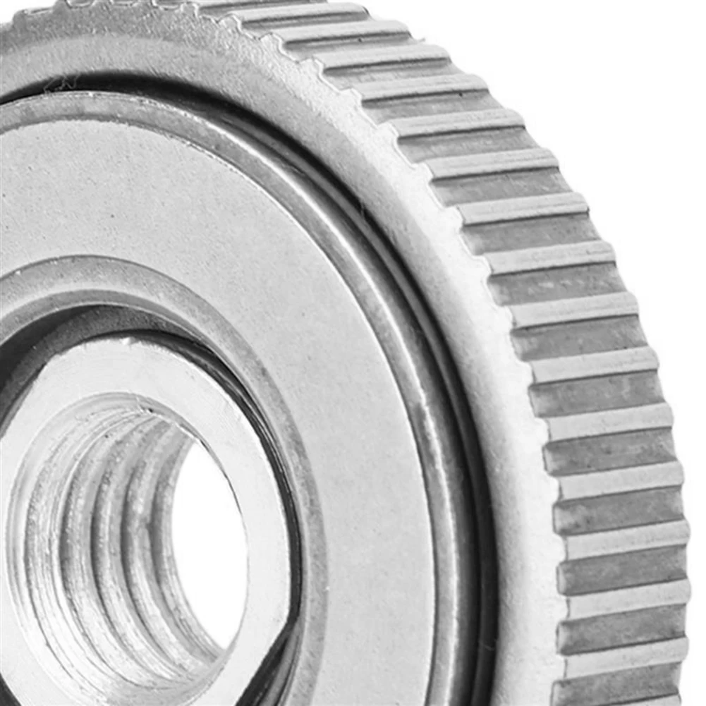 Широкий спектр применения: Зажимная гайка подходит для всех угловых шлифовальных машин с интерфейсом M14 на рынке, используется для угловых шлифовальных машин и режущих машин со скоростью 1200 Вт 11000р/мин и диаметром шлифовального диска 125. Например, алмазные режущие диски, шлифовальные диски, шлифовальные диски в форме чашки, алмазные пластины и другие типы шлифовальных кругов.