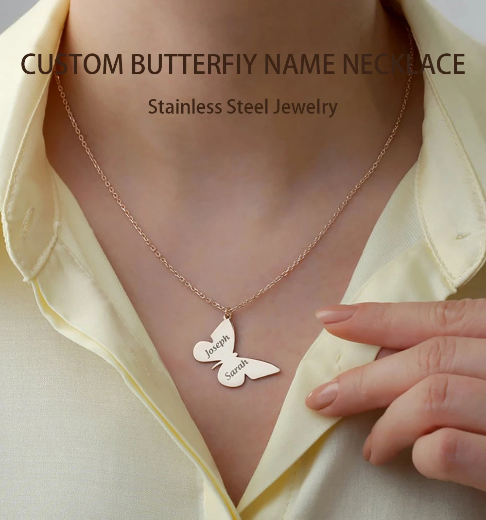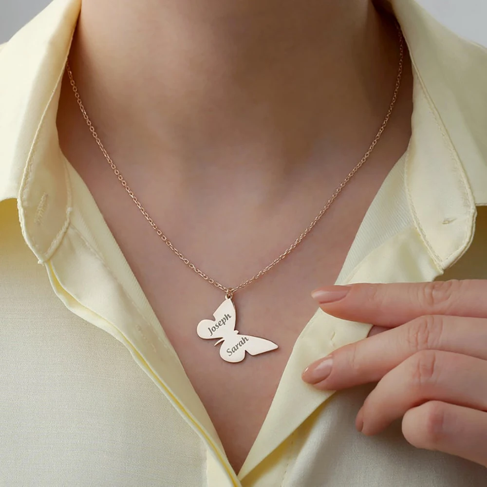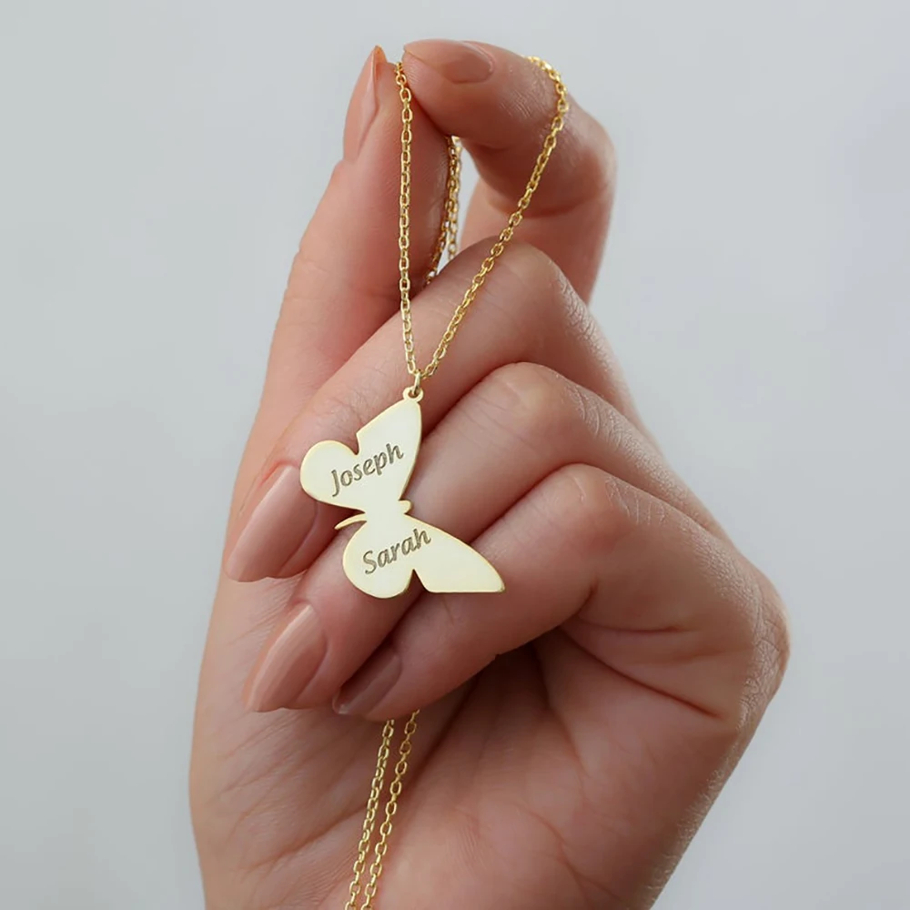 Мини-милое ожерелье с 2 именами в виде бабочки на заказ, персонализированные романтические парные ювелирные изделия с возможностью гравировки даты, подарок на день Святого Валентина