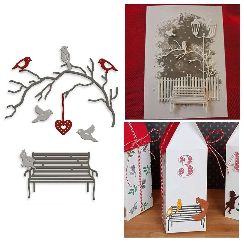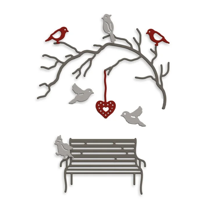 Crazyclown Park скамейка с изображением птиц на ветках сердце металлическая резка штампы DIY бумажные карточки для скрапбукинга трафарет для альбома подходит Особенности: