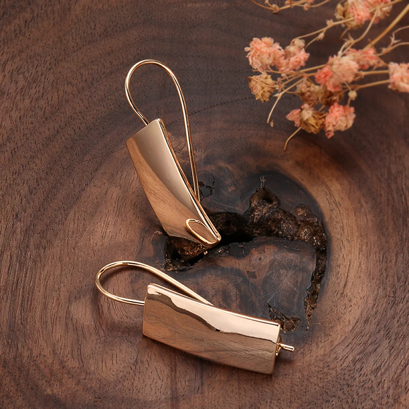 Серьги-подвески женские из розового золота 585 пробы, квадратные