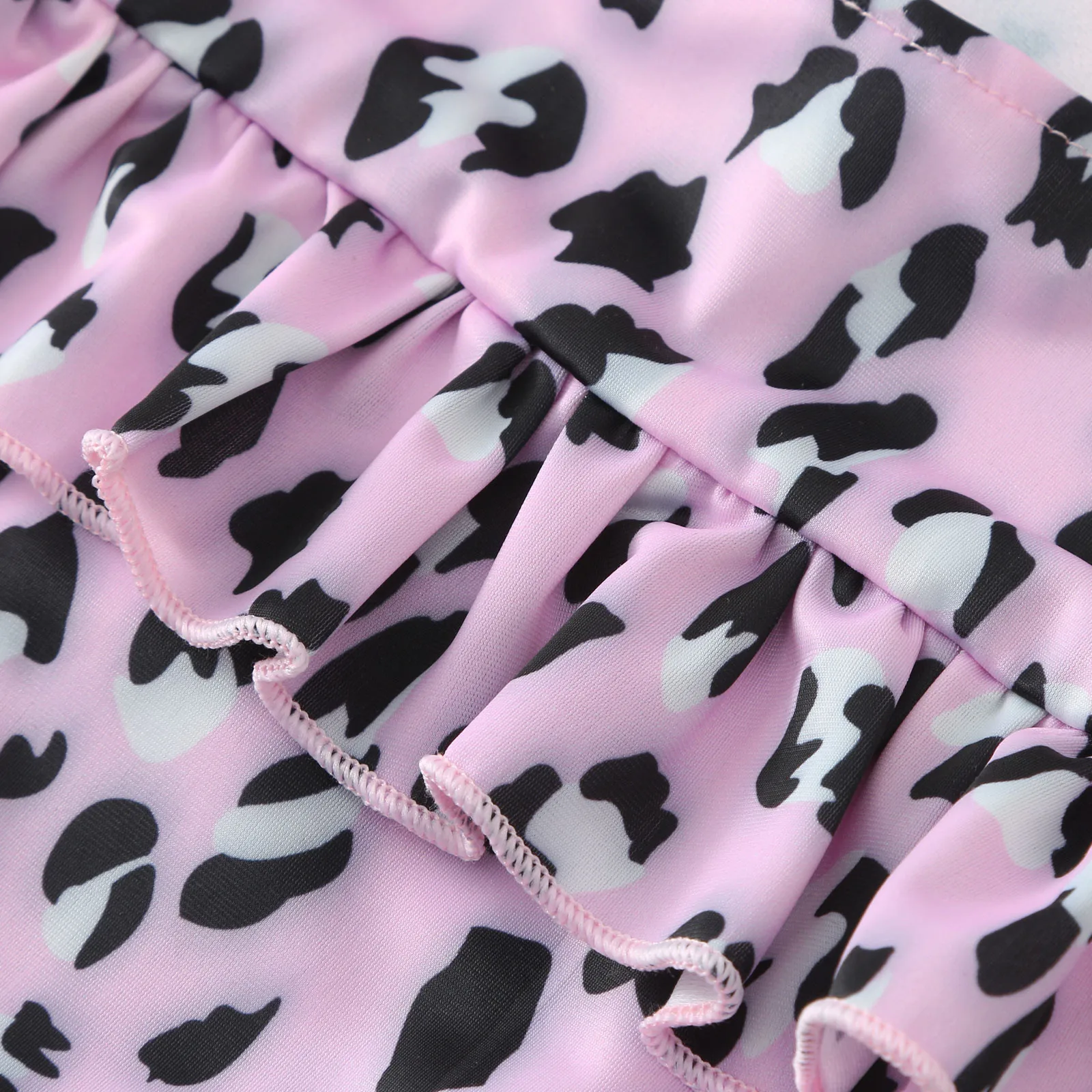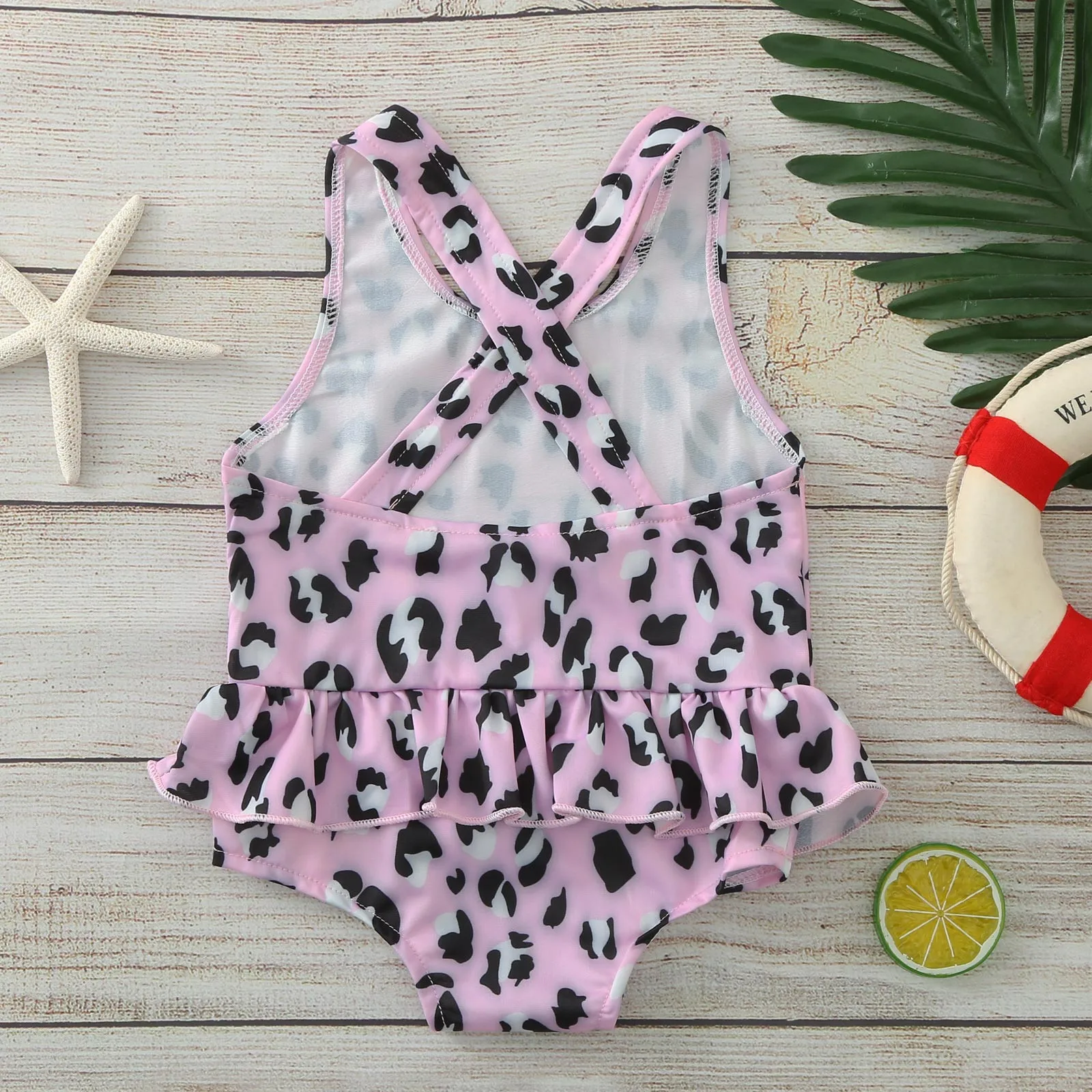 Для маленьких девочек комплект одежды, милое цельное платье-комплект с леопардовыми оборками купальники, купальный костюм Одежда для купания, пляжная одежда, одежда для малышей
