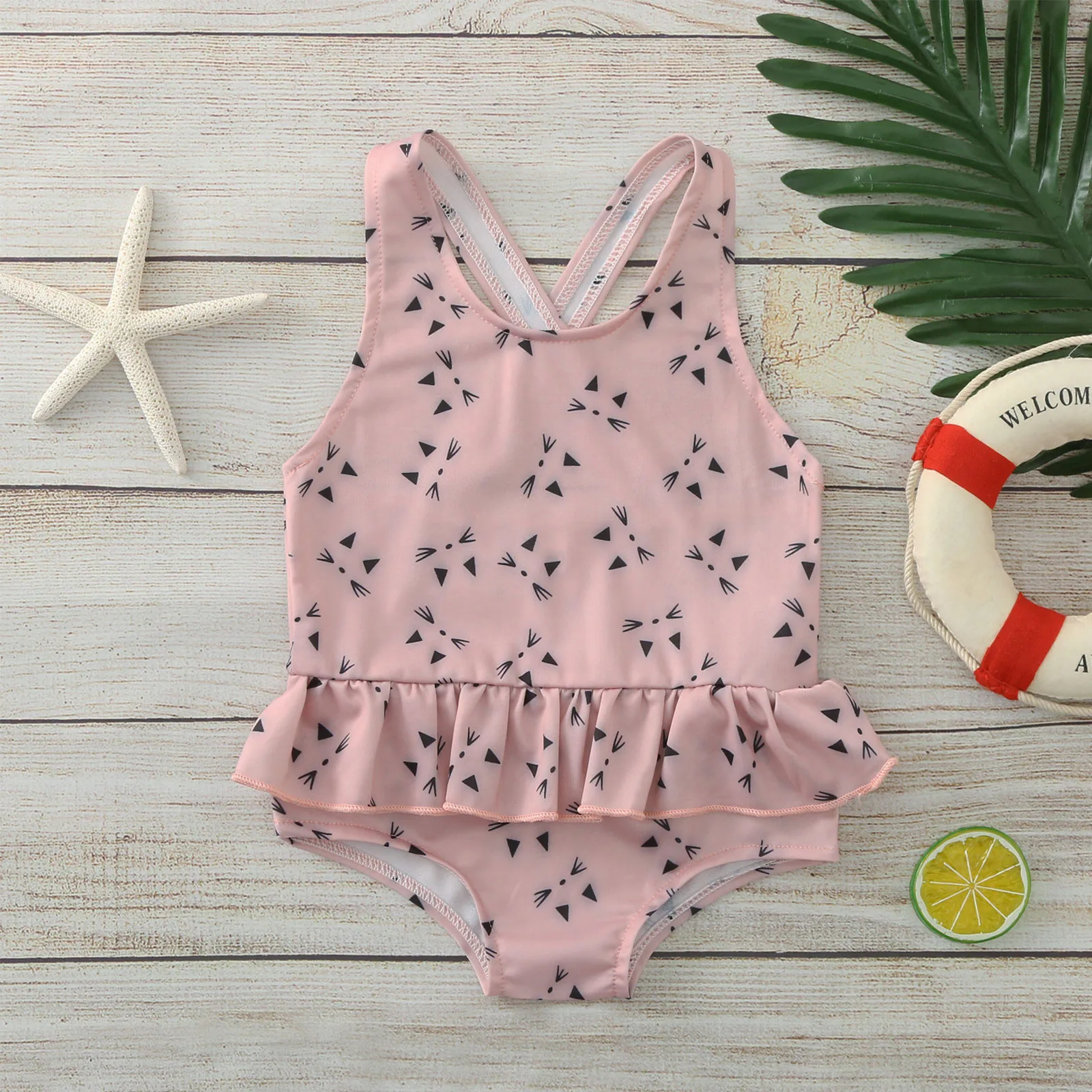 Цельный милый купальный костюм с оборками для маленьких девочек